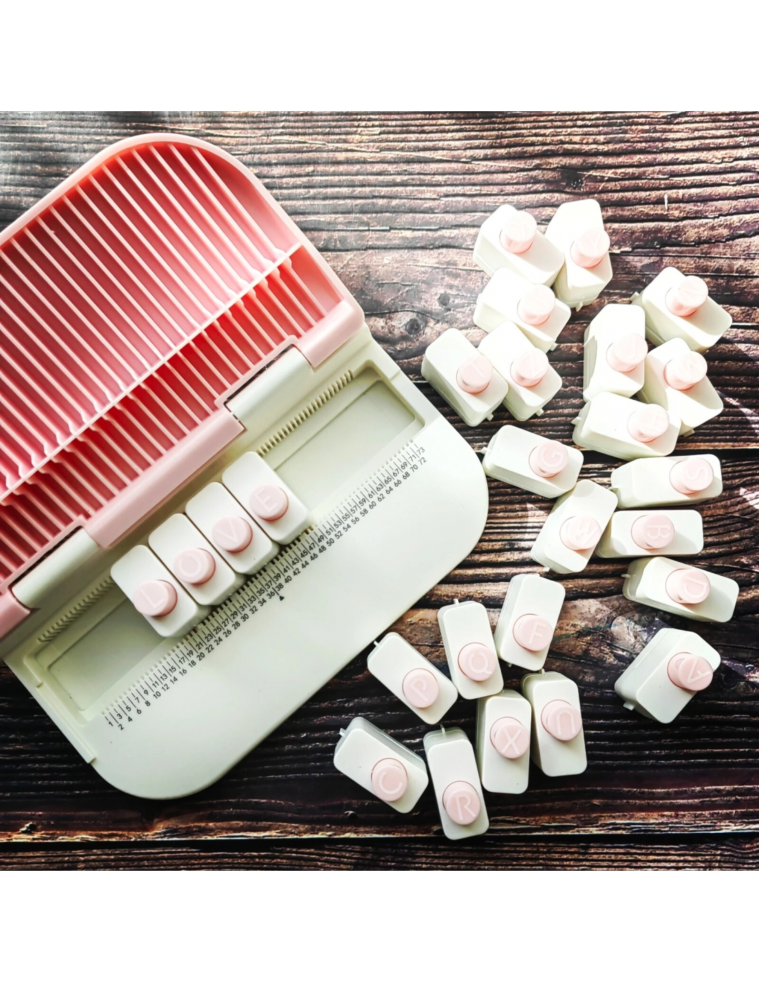 La punch board contiene 26 perforatrici a forma di lettere maiuscole che possono essere fissate nel contenitore. In questo modo potrete perforare ben 10 lettere contemporaneamente, allineate in modo perfetto. Innanzitutto create il testo che preferite, sia breve che più lungo, su cartoncino o altra carta per progetti creativi, usate i negativi come stencil, oppure create il testo con le lettere perforate. La confezione comprende la punch board con le 26 lettere dell’alfabeto internazionale. Le fustellatrici a forma di lettera si possono agganciare comodamente una all'altra per riporle in modo ordinato e mantenere il piano di lavoro altrettanto ordinato. La tavoletta può essere utilizzata insieme al set di fustelle con cifre e segni di interpunzione di We R Makers.