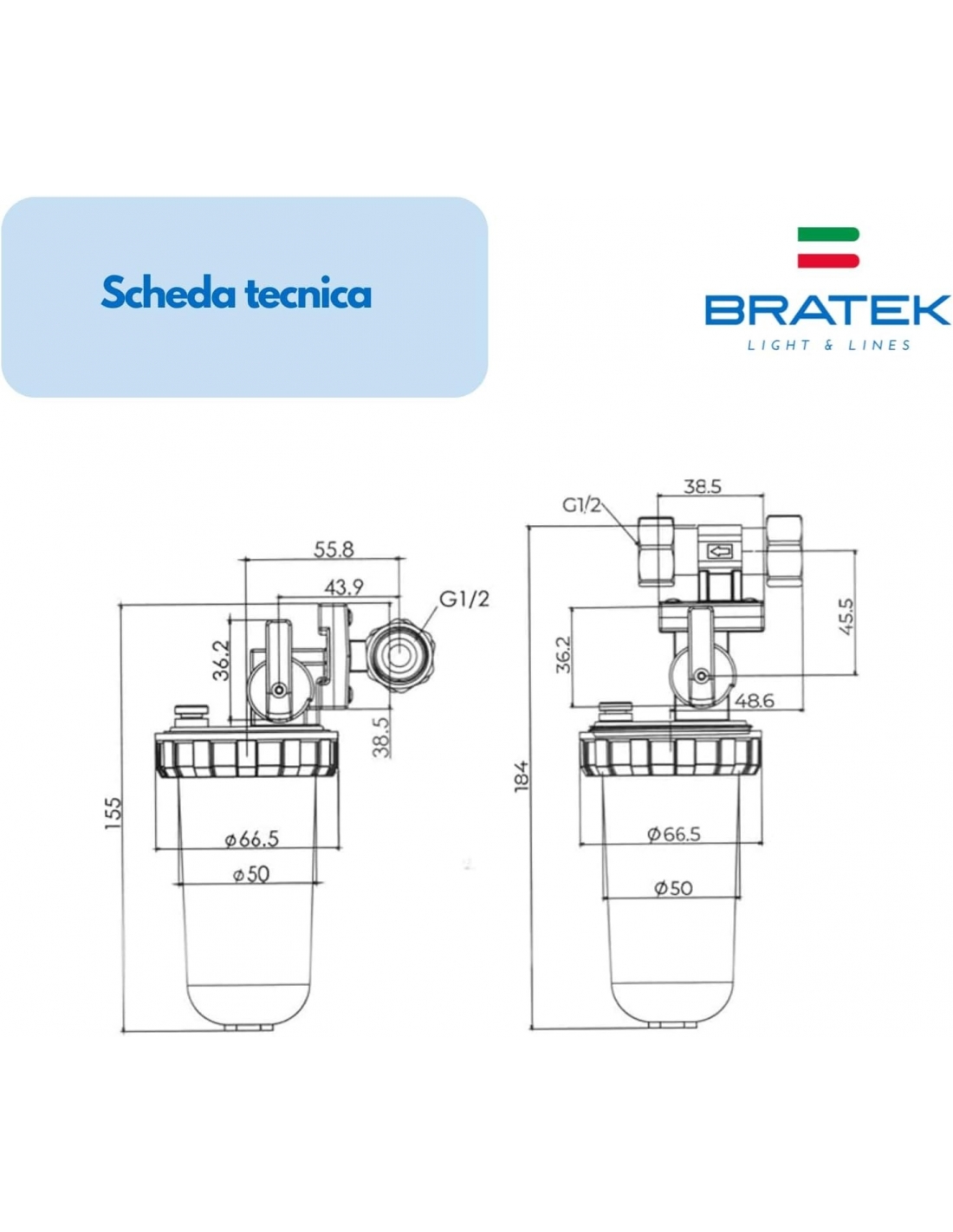 BRATEK Dosatore impianti idraulici Polifosfati Ruotabile con By-Pass, Collegamento Impianto ½”, 2 Ricariche in Polvere, Dosatore Impianti Idraulici e Sanitari, Portata max 1,5 m³/h