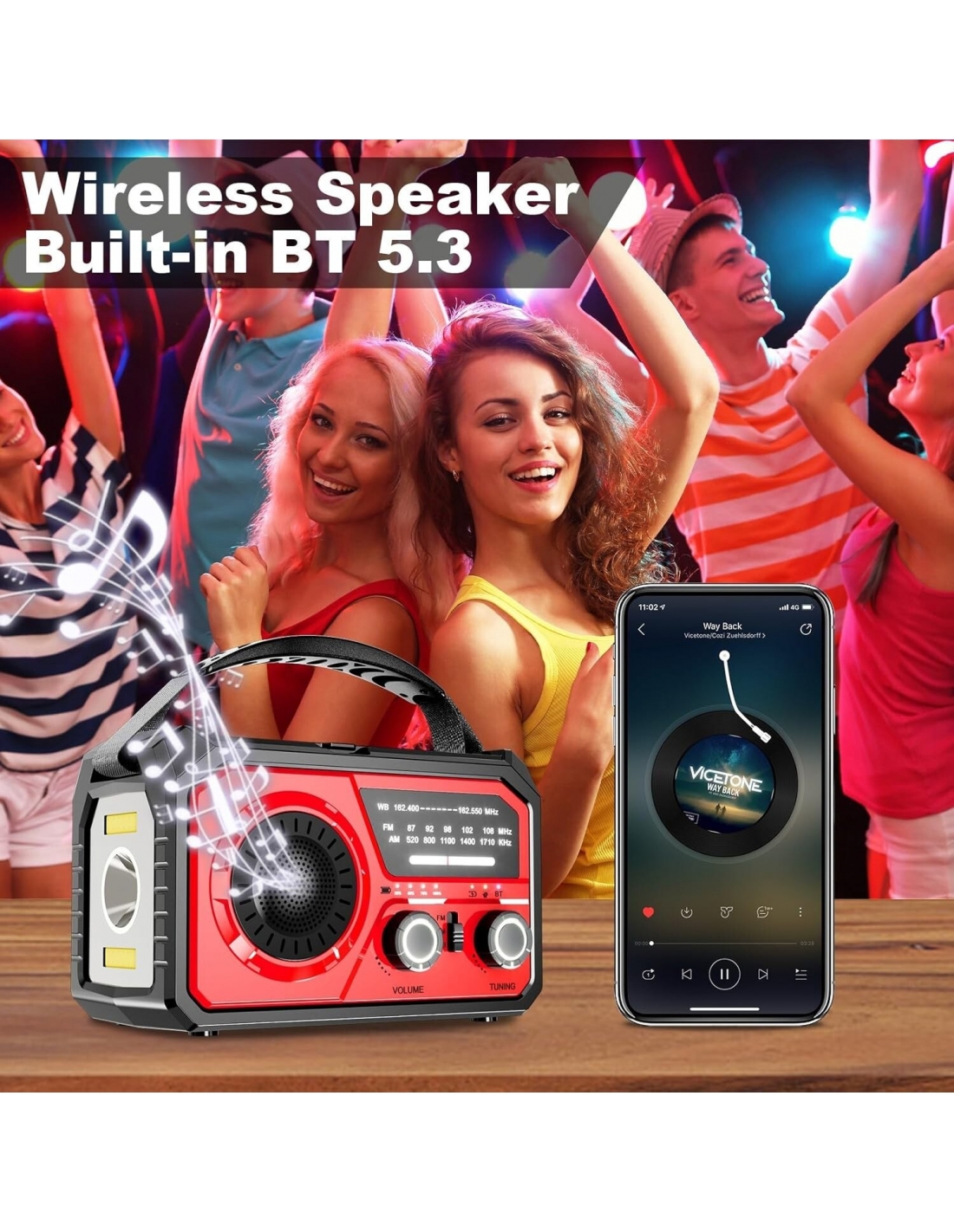 - Dotata di Bluetooth 5.3: dai nuova vita a questa radio e trasformala in un altoparlante Bluetooth. Puoi passare facilmente dalla radio alla musica del tuo cellulare in qualsiasi momento. Questa radio è un ottimo aiuto per il campeggio all'aperto.