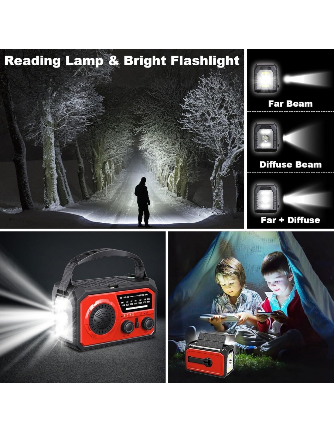 - Un miracolo per la sopravvivenza all'aria aperta: non è solo una radio; è un dispositivo di sopravvivenza completo. Integra doppi allarmi SOS, bussole, torce elettriche potenti e una luce di lettura. (La batteria da 16.000 mAh, la manovella e il pannello solare forniscono una solida base per queste funzioni di sopravvivenza.)