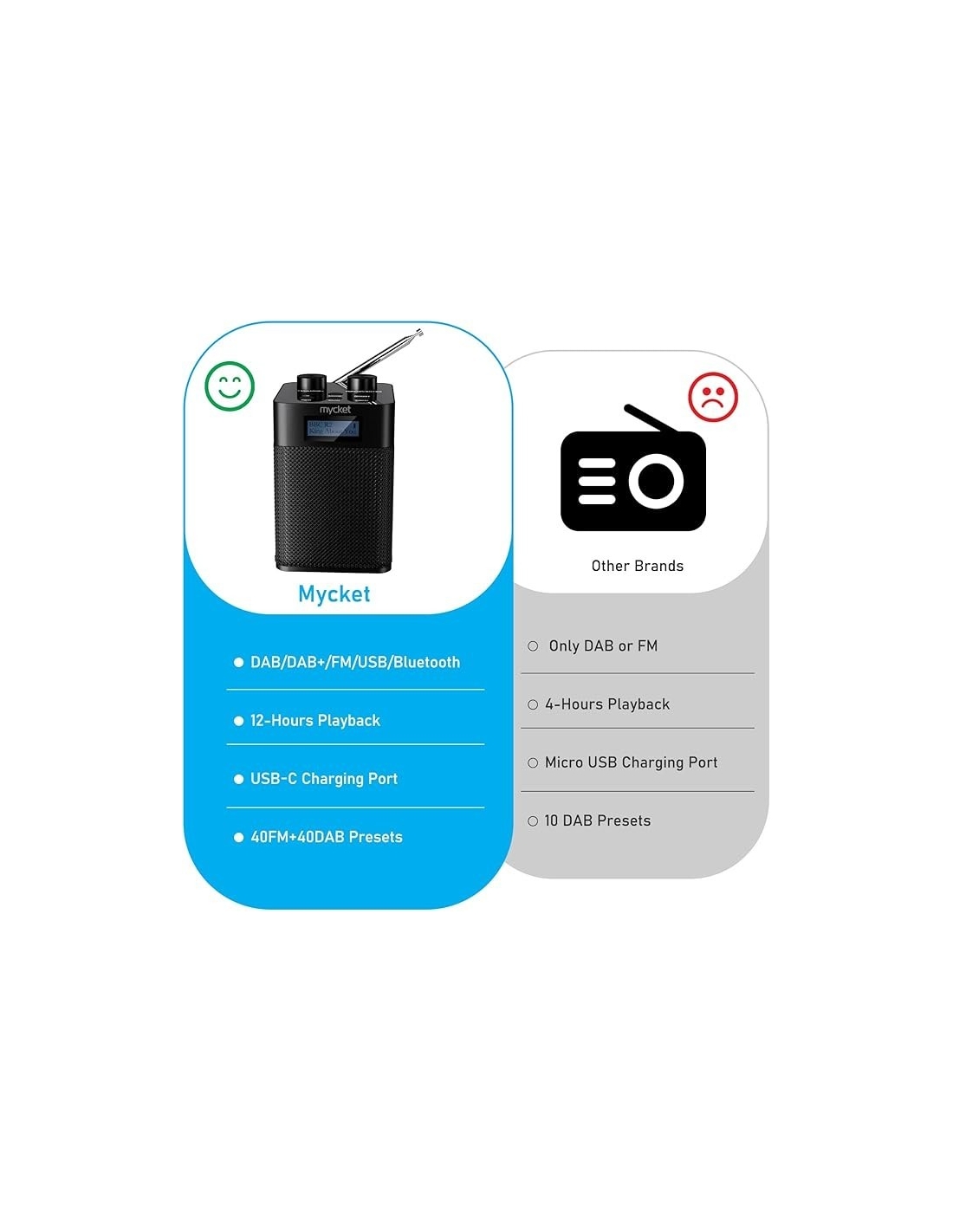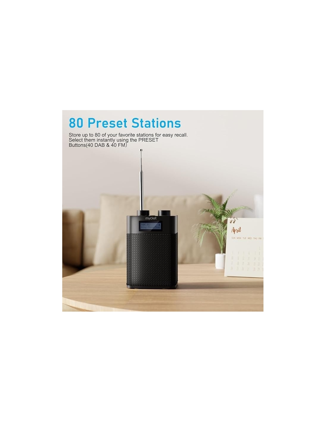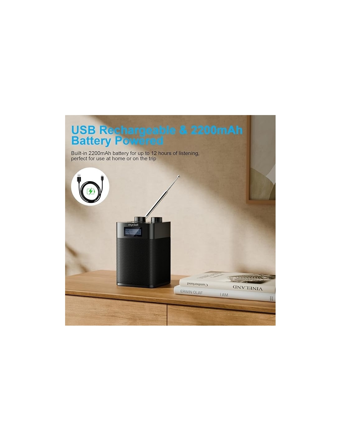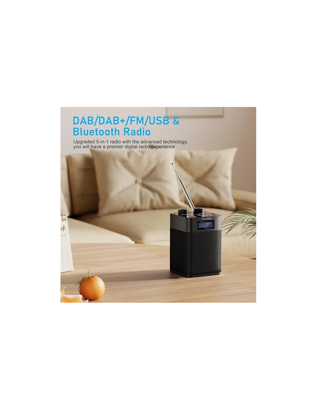 Mycket Dab/Dab+ Radio Digitale e FM, Radio Alimentata a Batteria Integrata da 2200 mAh, Ricaricabile Portatile DAB Radios con Bluetooth/U, 80 Stazioni Preimpostate, Ingresso Cuffie, LED Display