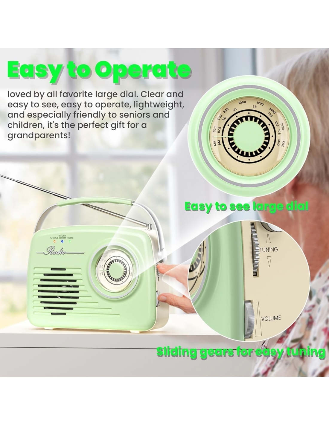 - 【Facile da usare】Questa manopola e scala di sintonizzazione AM/FM sono più grandi e chiare che mai, rendendo facile la sintonizzazione precisa della stazione desiderata. Gli anziani apprezzeranno particolarmente il design intuitivo, che la rende un'ottima opzione per una piccola radio AM/FM portatile per genitori o nonni a casa.