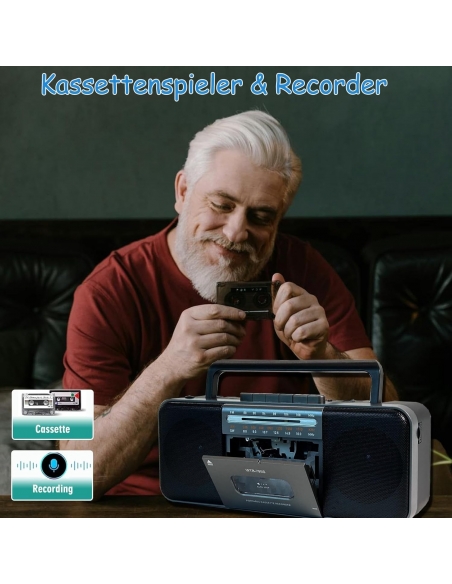 - Riproduzione classica, qualità del suono come prima: questo registratore a nastro retrò risveglia la nostalgia con un design classico, combinato con la tecnologia moderna per garantire una qualità del suono chiara e pura. Rivivi i bei tempi registrati su nastro e senti quelle emozioni e ricordi unici.