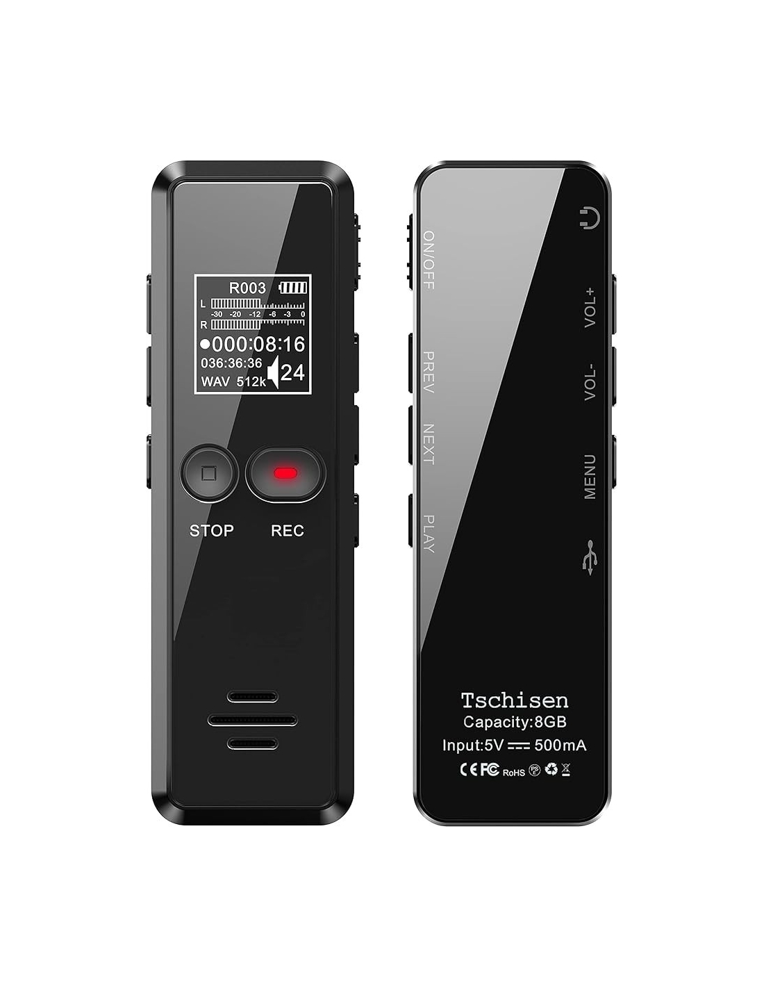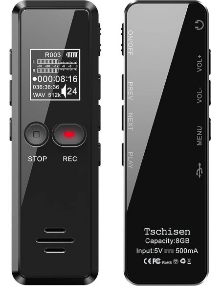 - ✨【Batteria potente e ampia memoria】Tschisen registratore vocale digitale batteria integrata da 410 mAh può registrare 12 ore ininterrottamente. Con una memoria interna di 8GB è possibile memorizzare fino a 145 ore di registrazioni o 1500 brani.
