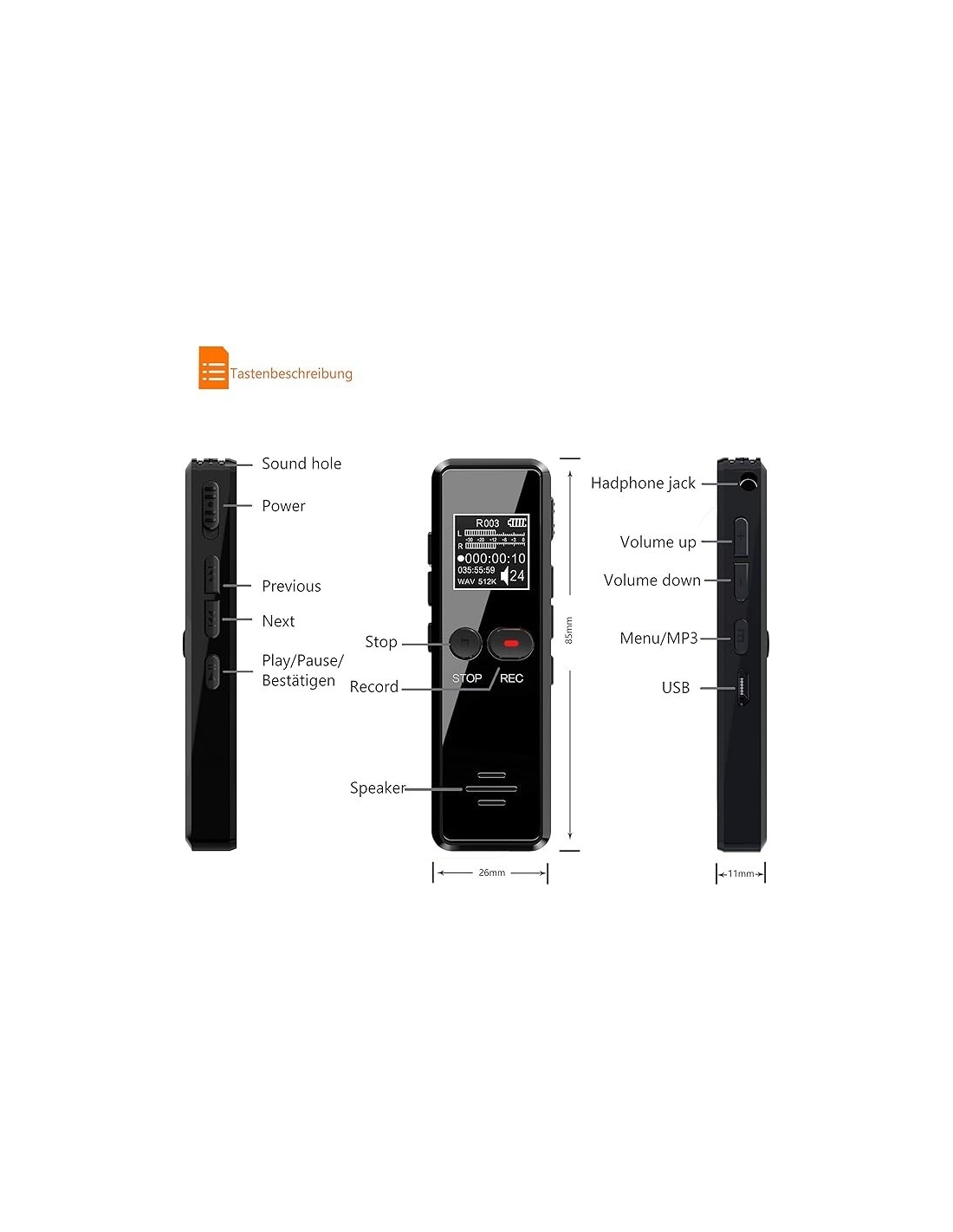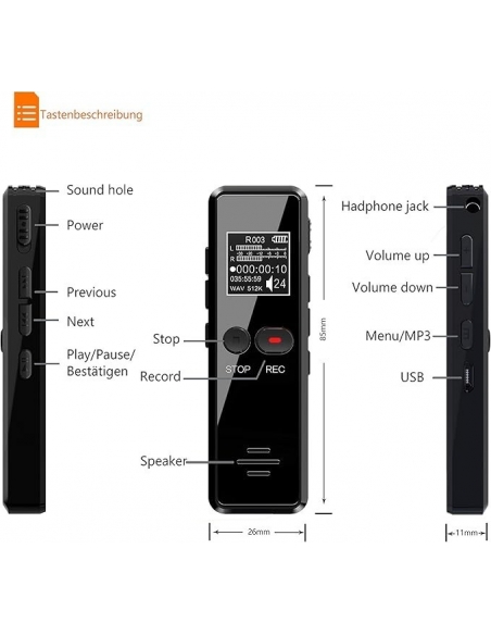 - ✨【Registrazione di alta qualità e riduzione del rumore】Tschisen registratore vocale portatile ha una chiara risoluzione di registrazione di 1536 Kbps e doppi microfoni, con riduzione dinamica del rumore, diverse velocità in bit, velocità in bit più elevate, eccellente qualità di registrazione, registrazione chiara e lettore MP3.