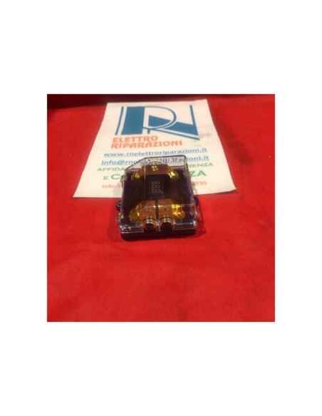 - Il distributore di corrente dev'essere collegato al negativo pre far funzionare l'amperometro e voltmetro e i led di segnalazione fusibili. Il contatto del negativo si trova su una delle viti di fissaggio del distributore.