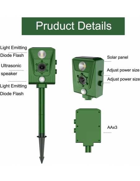 - 【Innocuo per l'uomo e gli animali】 Il repellente ultrasuoni per talpe di tipo solare emette forti onde di vibrazione e segnali acustici. Fa sentire gli animali a disagio e può essere respinto senza danneggiarli. Poiché è un sensore a ultrasuoni, puoi sentire un piccolo suono. È innocuo per l'uomo e gli animali, ma si consiglia di posizionarlo all'aperto.