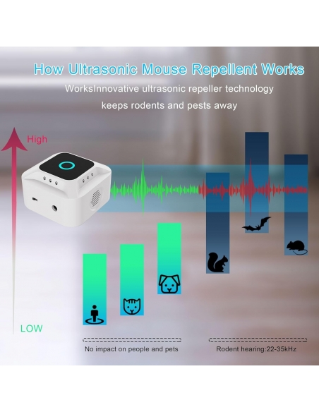 Ultrasuoni Repellente per parassiti per roditori Dispositivo elettronico per Interni Controllo ratti con luci, Repellente per scoiattoli ad ultrasuoni