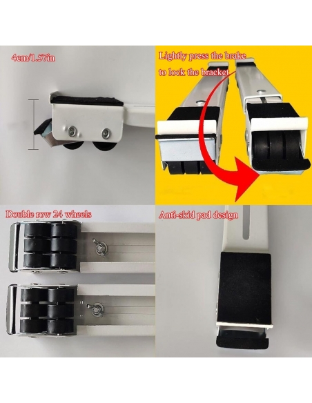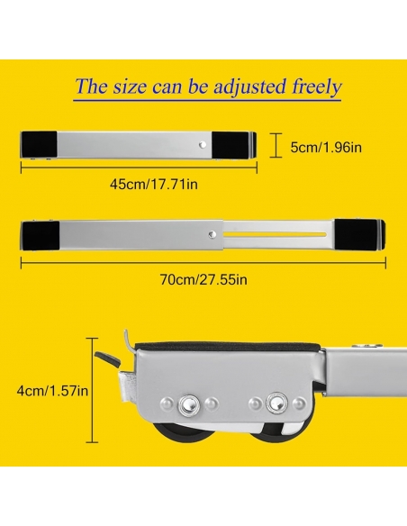 - ★ Carrelli mobili regolabili: design a doppia fila, struttura semplice, nessuna installazione richiesta. La lunghezza può essere facilmente estesa da 45 cm a 70 cm, dandoti abbastanza libertà per montare questo carrello di mobili a diverse dimensioni di mobili, come frigoriferi, lavatrici, asciugatrici, ecc.