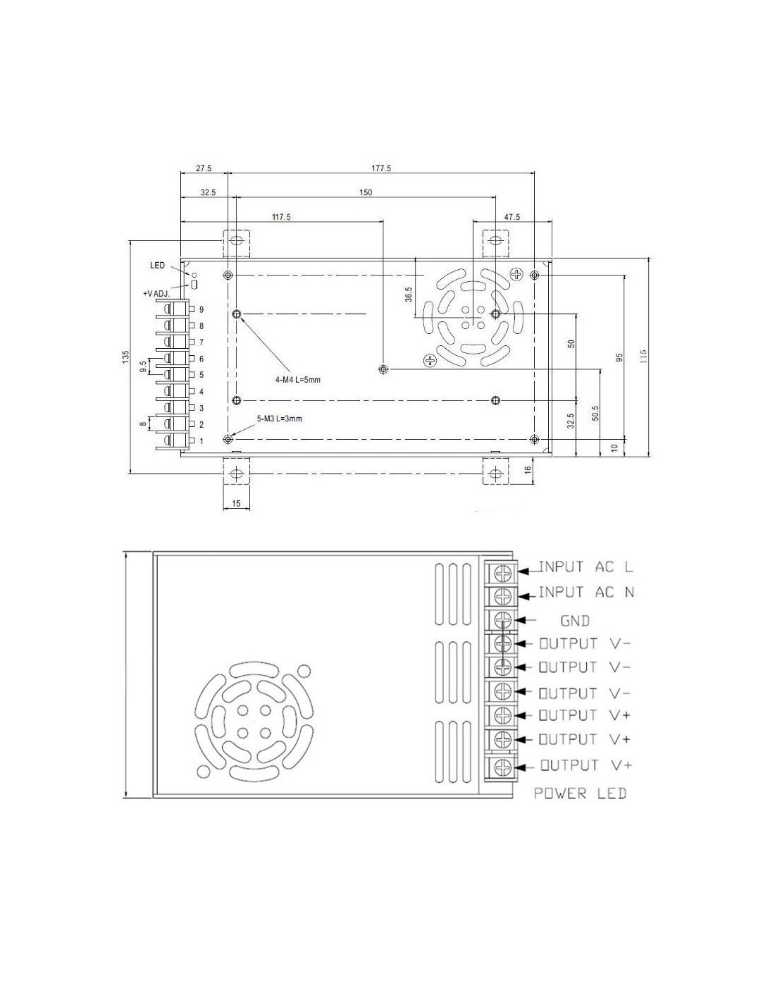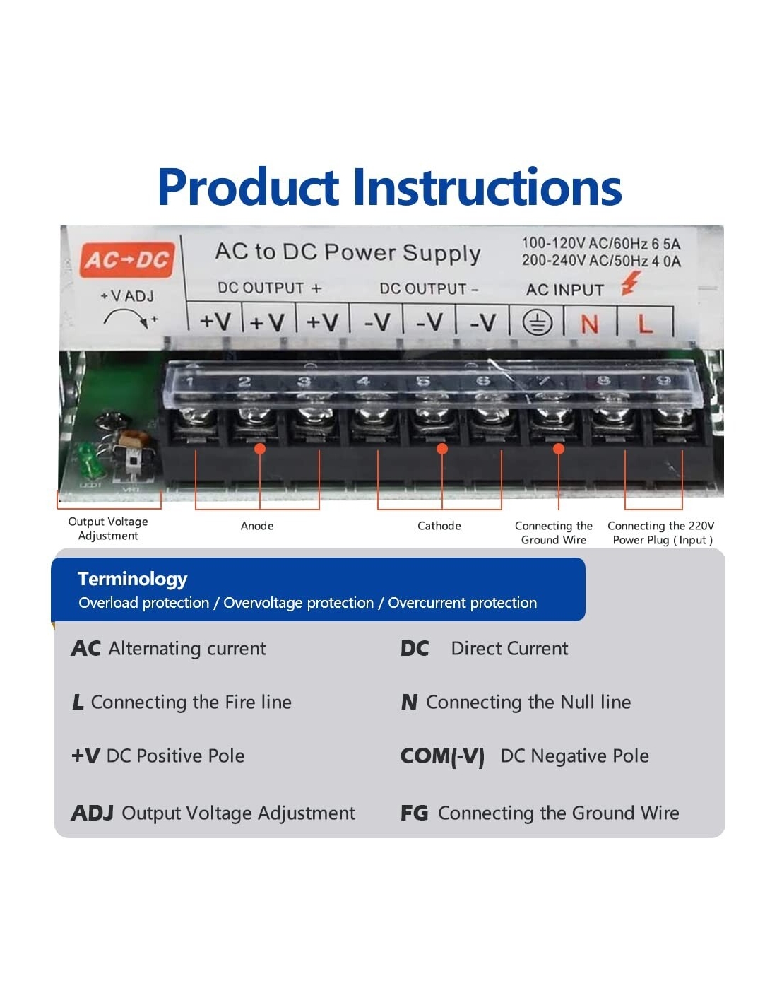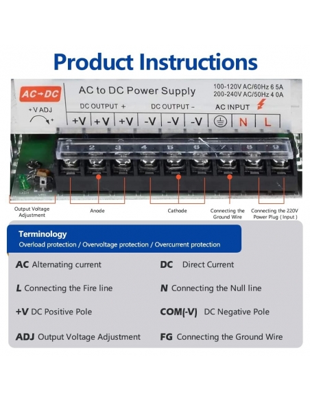 Alimentatore di transformatore ac 110v 220v a dc 30a 360w