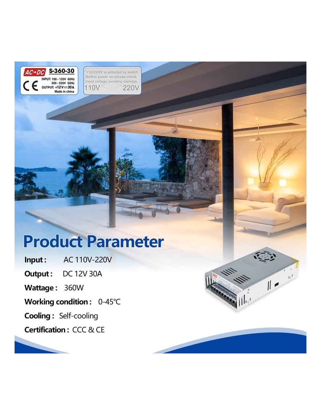 Alimentatore 12V 30A Transformatore 360W Adattatore Switching Stabilizzato 220v