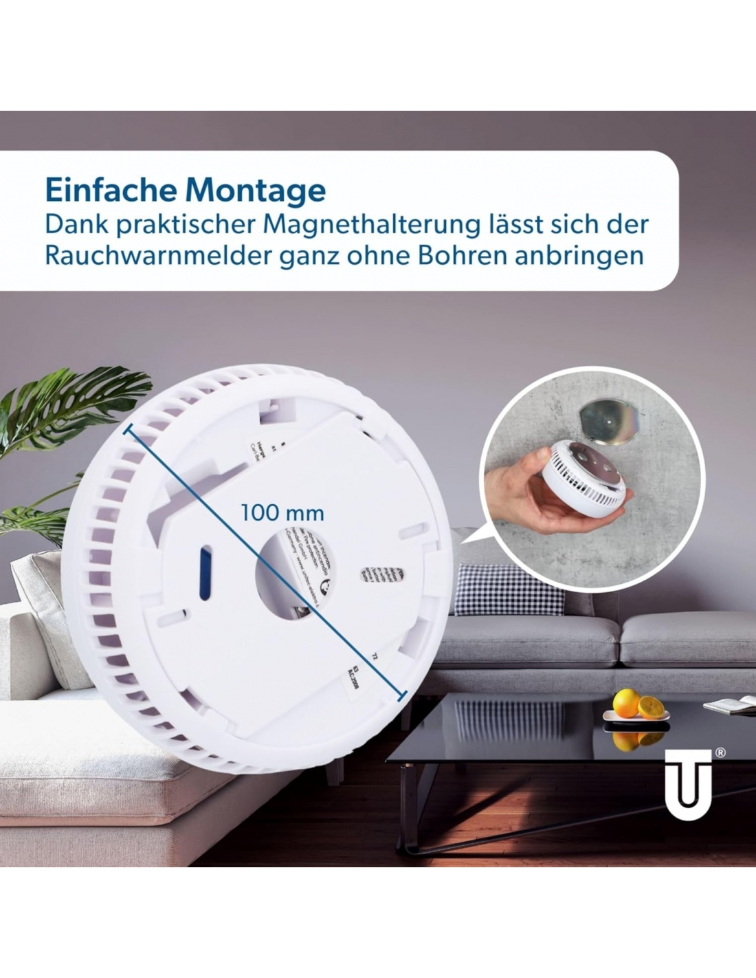 - SEMPLICE: la semplice installazione del rilevatore di fumo avviene senza attrezzi e senza forare o sporcare