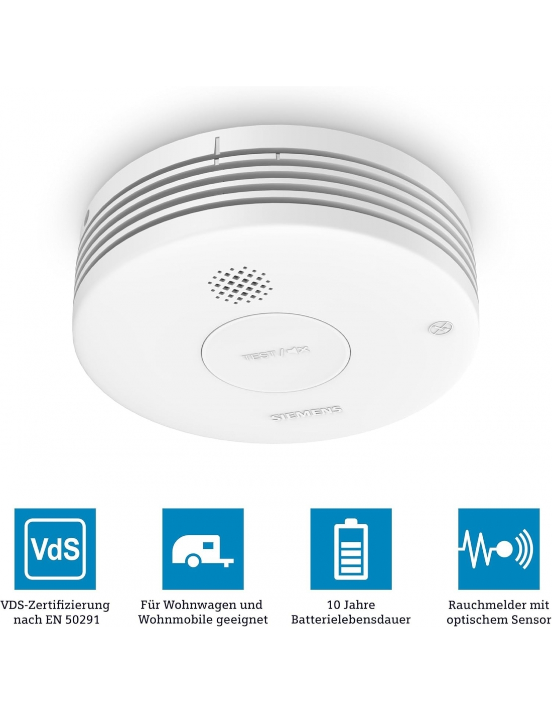 - Possibilità di utilizzo: il rilevatore di fumo Siemens è adatto anche per l'uso in roulotte e camper.