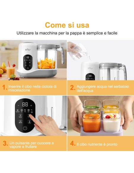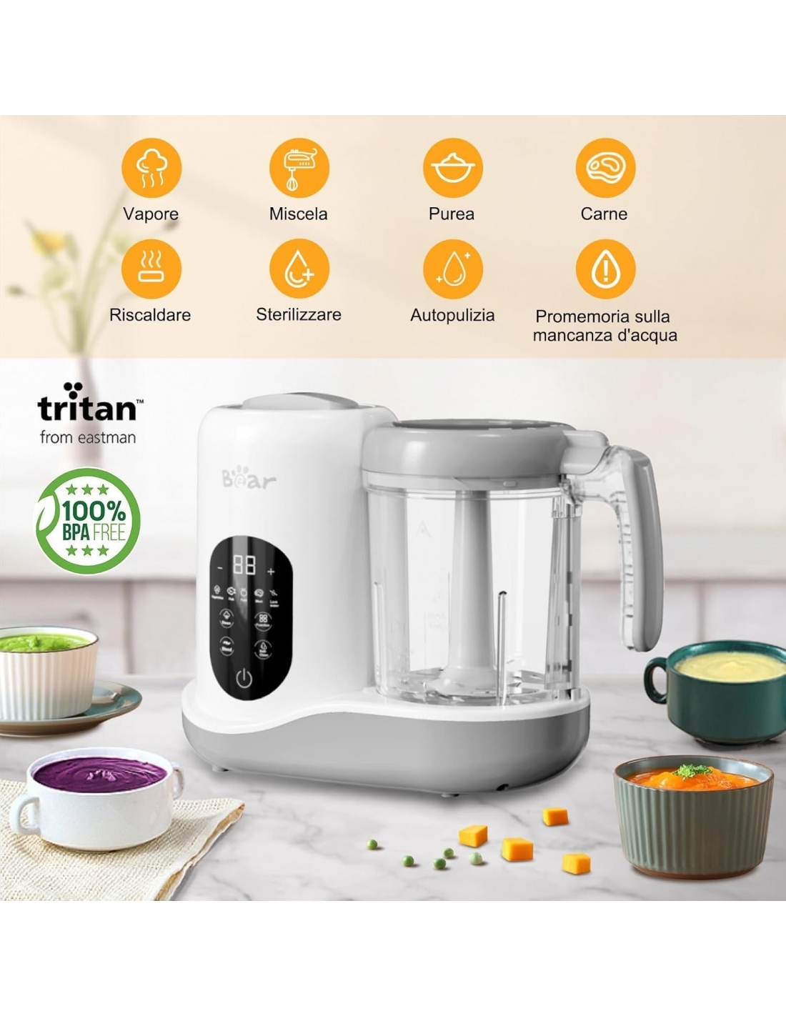 Bear Cuoci pappa Multifunzione, Mixer multifunzionale 7 in 1 per Bebé, Cottura e tritatura automatica, Funzione autopulente, Controllo touchscreen