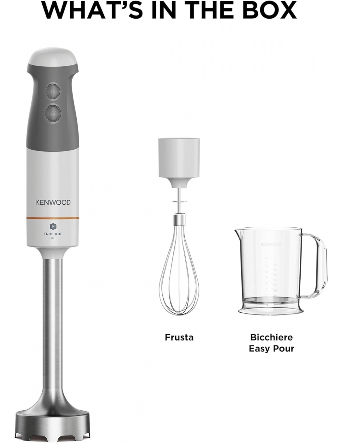 Kenwood Triblade XL Frullatore ad Immersione, Mixer, Asta XL in Acciaio Removibile, Dotato di Frusta a Filo e Bicchiere Graduato con Manico da 0,75L, Potenza 850watt