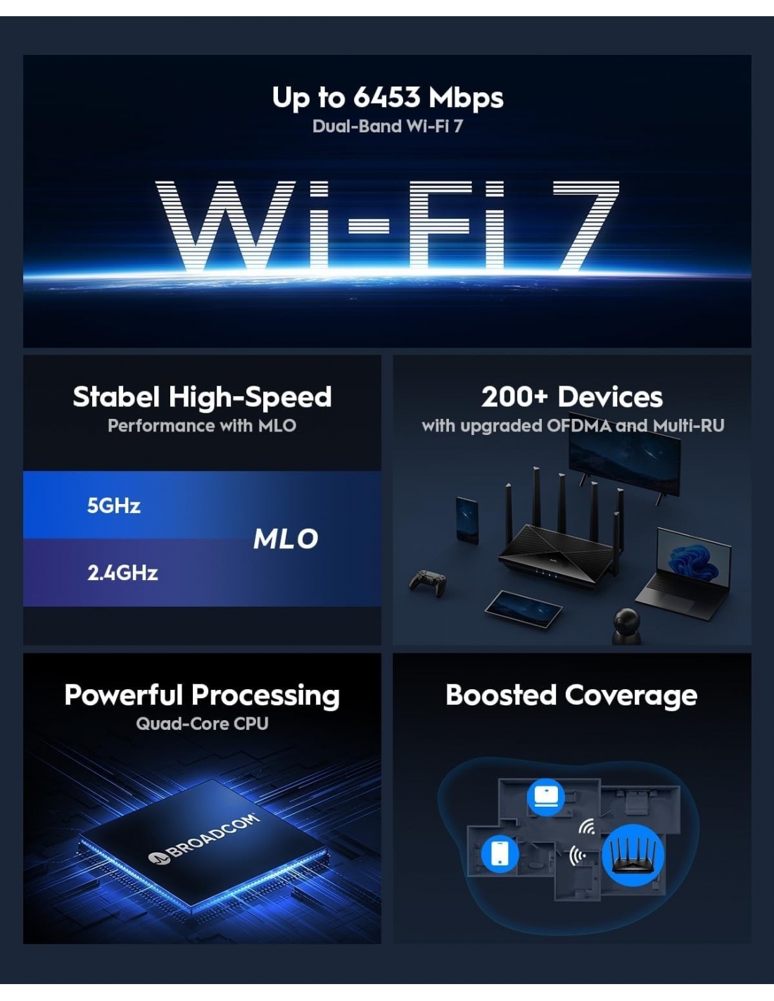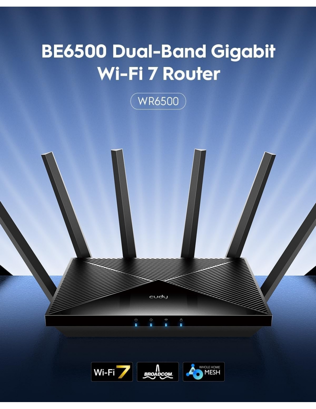 Cudy BE6500 WiFi 7 Router Da Gioco Gigabit Dual Band, 6500Mbps, Client/Server VP