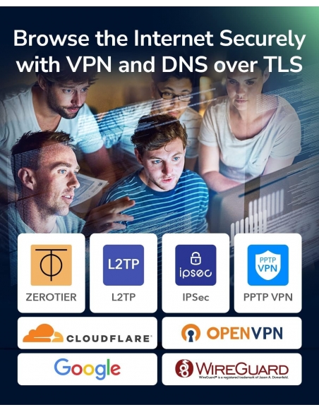 - VPN e DDNS PPTP / L2TP preinstallati. Con il client VPN PPTP / L2TP integrato, questo router 4G può facilmente stabilire una connessione al server PPTP / L2TP per trasportare tutti i dati e il traffico online, proteggendolo con la sua crittografia allo stesso tempo. Compatibile con altri 20 provider DDNS, comodo per gestire le telecamere remote.