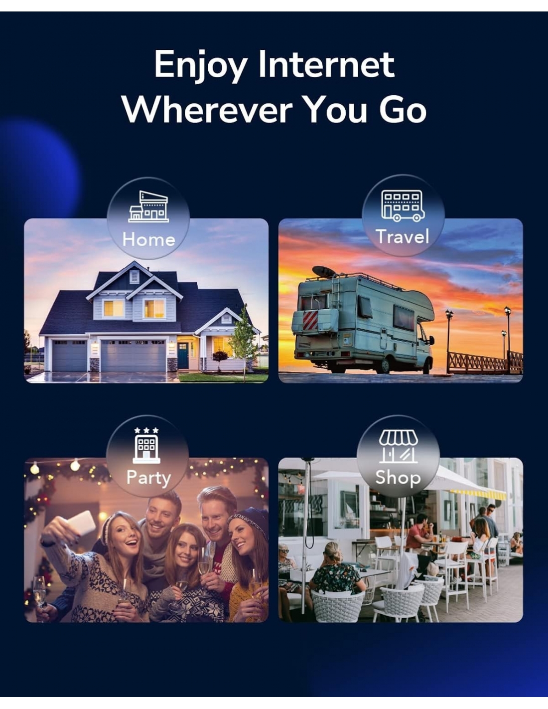 - Antenne ad alto guadagno per prestazioni migliori. Le antenne 4 x 5dBi ad alto guadagno aumentano la sensibilità del router, migliorano la qualità del segnale di 4G LTE e Wi-Fi, il che aiuta a stabilire una connessione Wi-Fi a lunga distanza.