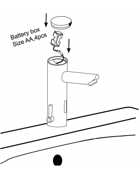 - 【Alimentazione】: alimentato da batteria alikalina 4AA; aprire il coperchio superiore del rubinetto e installare la batteria; la batteria può essere utilizzata per 2 anni per uso familiare.
