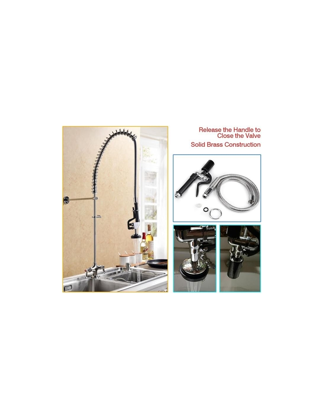 - Facile da usare: spingere la maniglia per far scorrere l'acqua, rilasciare la maniglia per spegnere automaticamente il flusso d'acqua, è molto comodo da usare. Attacco spray per uso commerciale. spruzzatore per piatti. rubinetto pre-risciacquo.