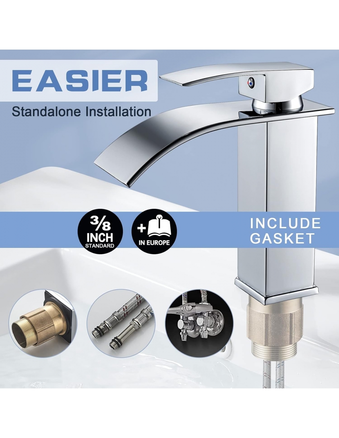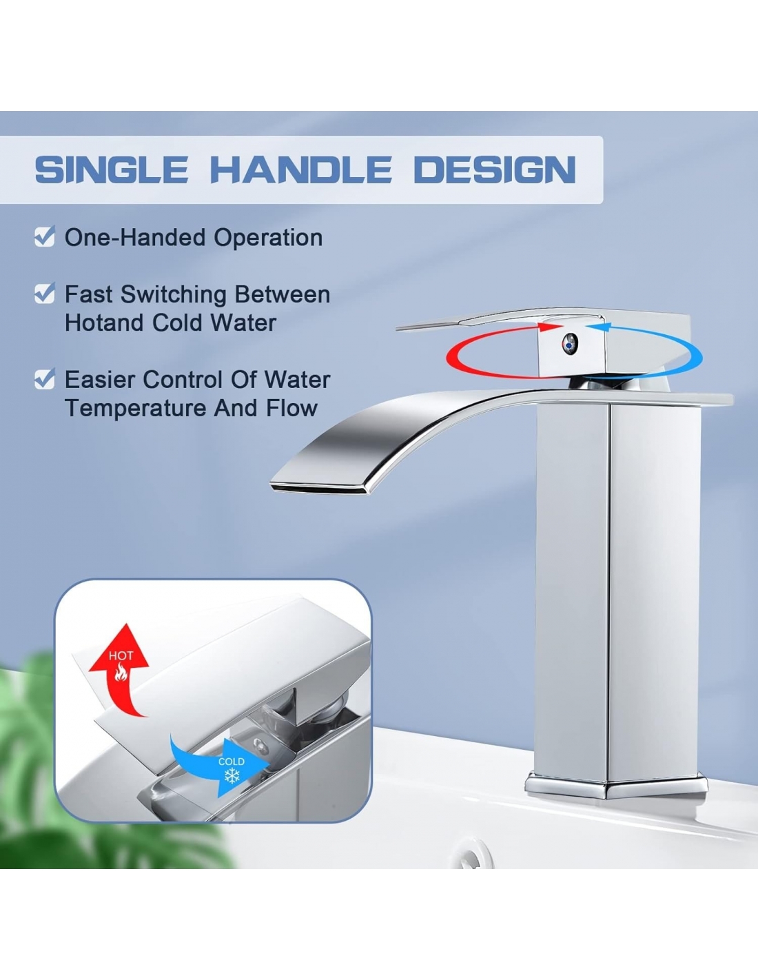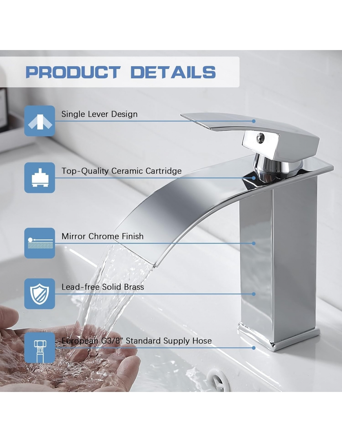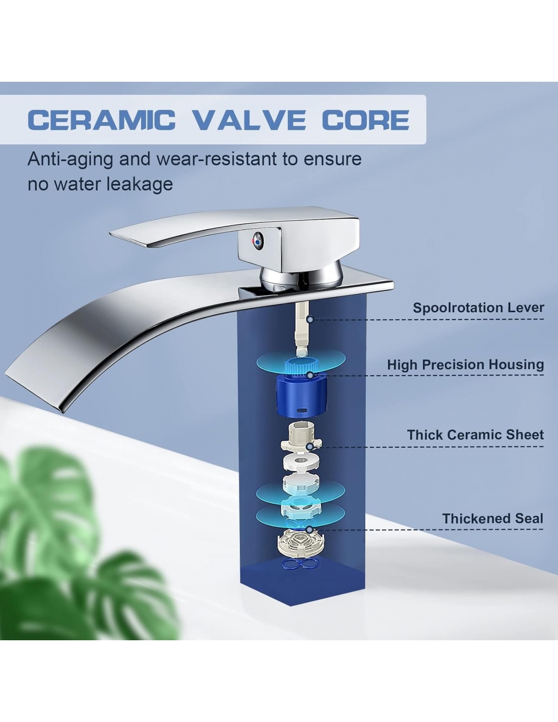 - 【RUBINETTO CASCATA】Questo rubinetto Bagno sfrutta al massimo un'estetica moderna con un beccuccio a cascata ultrasottile. La morbida bocca mostra la bellezza della natura ed, ascolta i suoni delle cascate naturali, adatta a diversi stili di bagno.