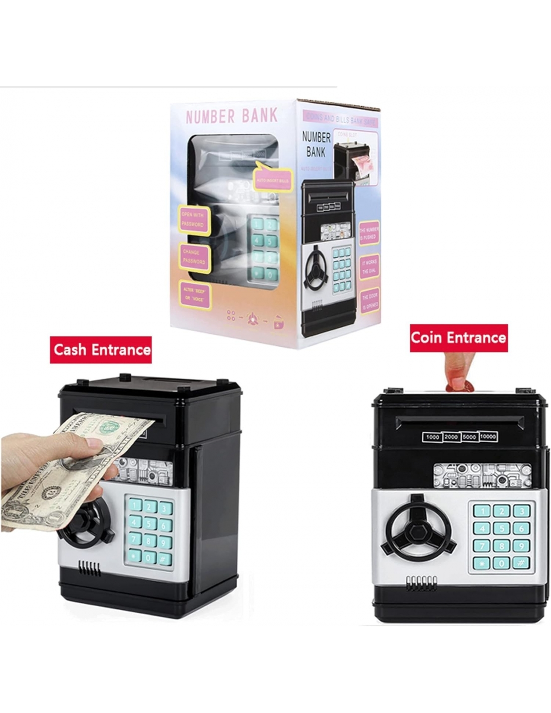 Salvadanaio elettronico per banconote e monete, con inserto automatico, per banconote, cassetta di sicurezza, password, bancomat, regalo di compleanno per bambini,cartone animato (nero)