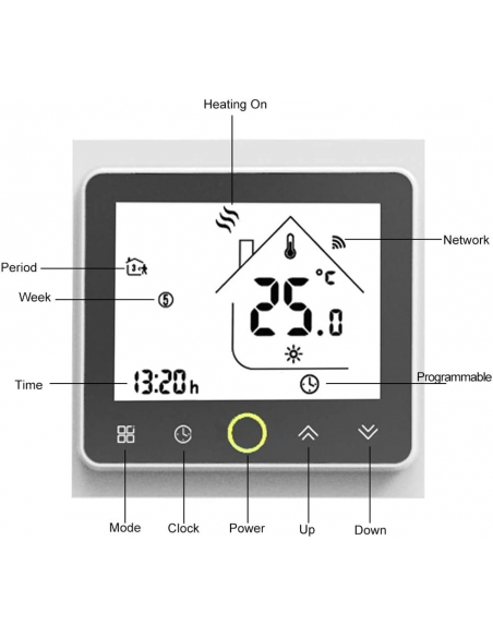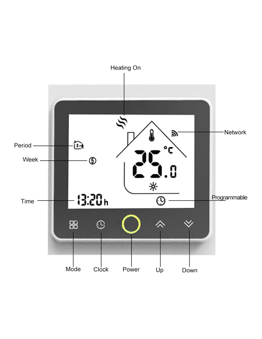 - Due Modalità: Il termostato wifi per il riscaldamento wiFi supporta la programma o manuale. È possibile utilizzare il controllo manuale o programma, facilmente regolare la temperatura della vostra casa.