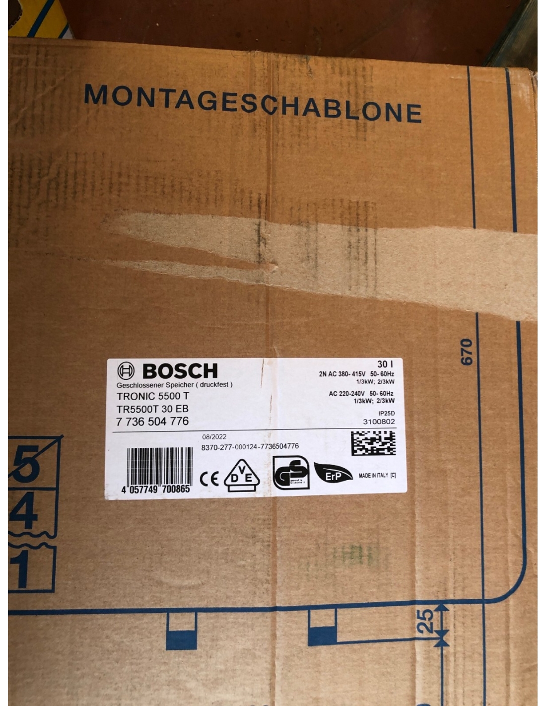 Scaldabagno elettrico a parete 30 Lt Bosch TRONIC 5500T TR5500T 30EB