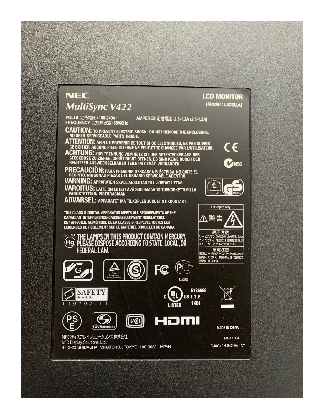 NEC MultiSync V422 LCD MONITOR L420UA Main Board 715g4674-m02-000-005k