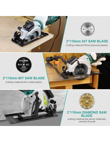 STANEW ST-T301 Mini seghe circolari, sega circolare da 3500 giri/min con 3 lame
