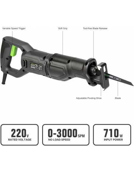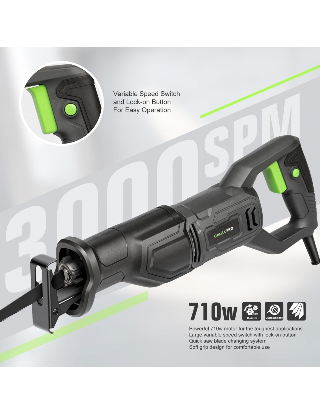 GALAX PRO Sega a reciprocazione da 710W con velocità variabile di 3000 SPM, per tagli precisi in legno, metallo e altro