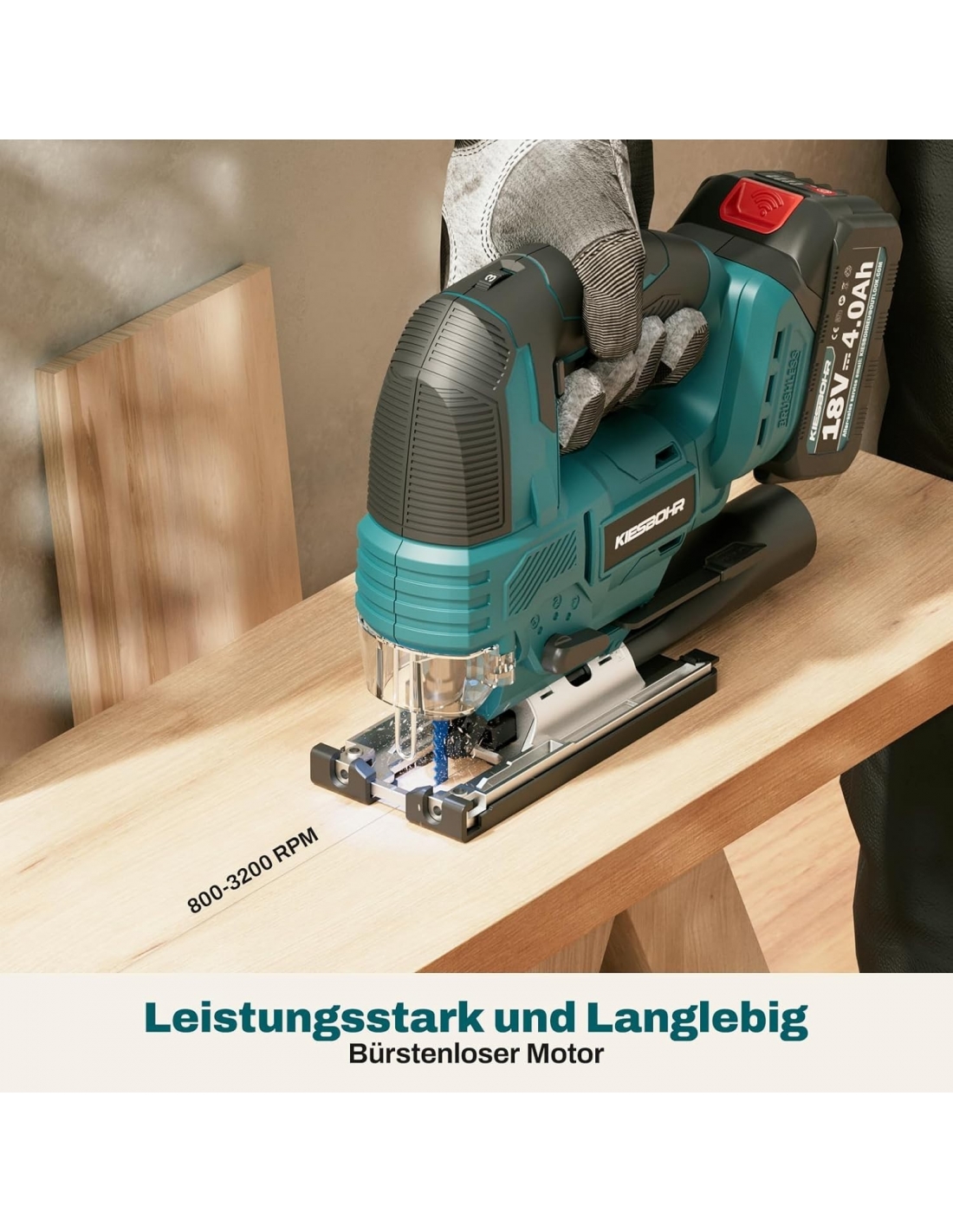 KIESBOHR CSJ001 Seghetto alternativo elettrico fai da te, compatibile con batteria Makita da 18 V, motore brushless, angolo di smussatura massimo di 45°, corsa di taglio di 26 mm, (batterie non incluse)