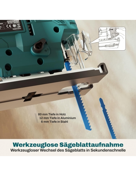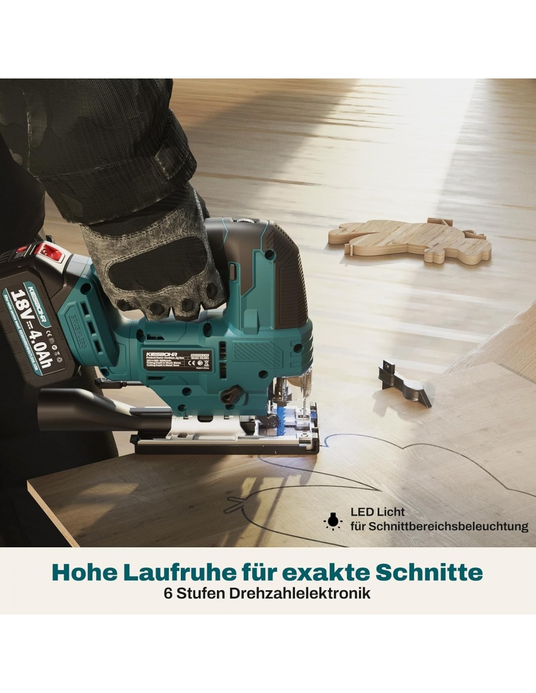 - Taglio preciso e veloce: questo seghetto alternativo ha un'azione di taglio a 4 stadi, che consente di effettuare tagli precisi nel legno fino a 80 mm di profondità.