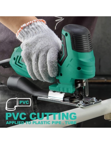 - 650 W con 6 velocità:Il seghetto alternativo da 650 W offre eccellenti prestazioni di taglio con una velocità di 3000 volte/min. Il seghetto alternativo con 6 velocità regolabili può tagliare facilmente diversi materiali