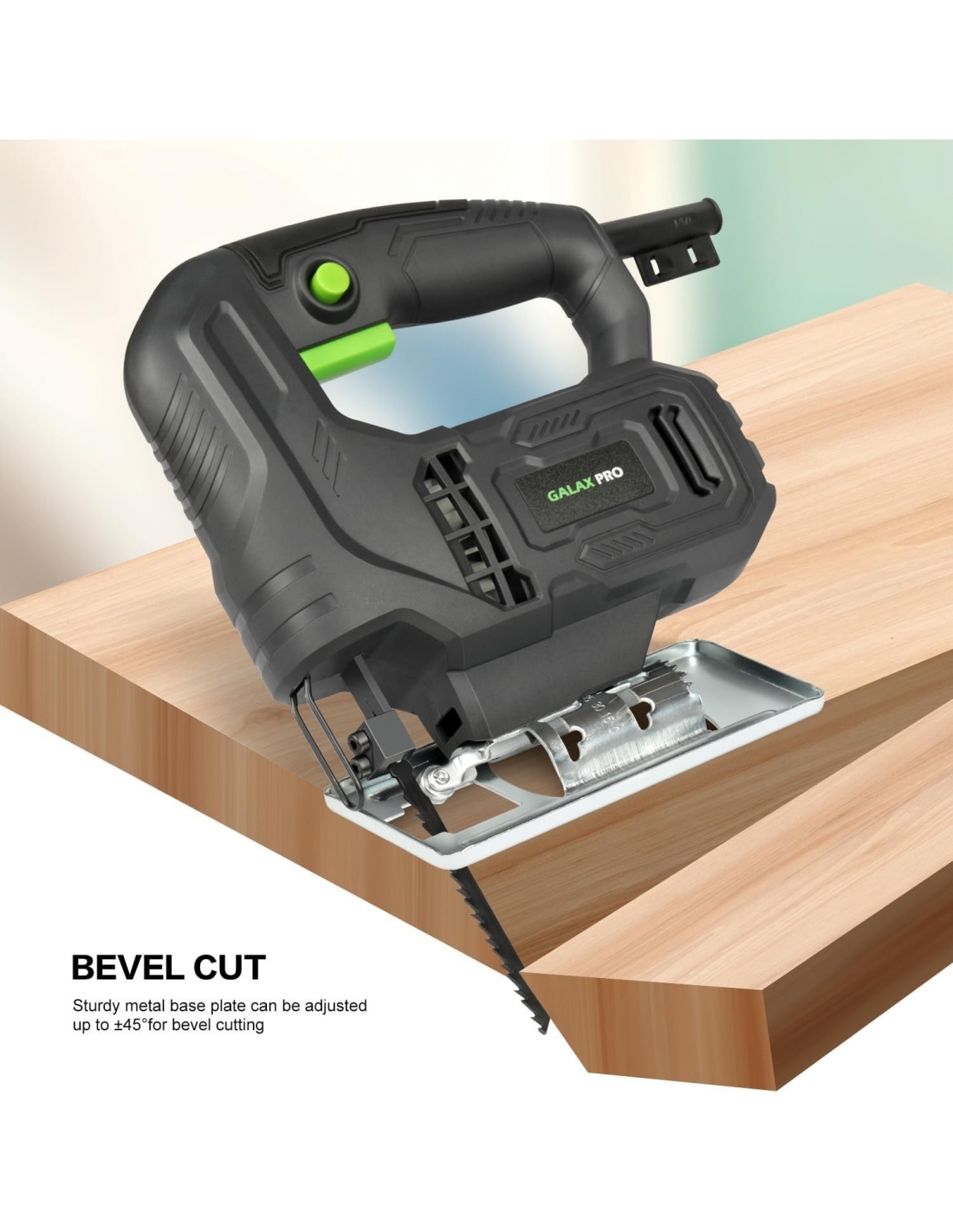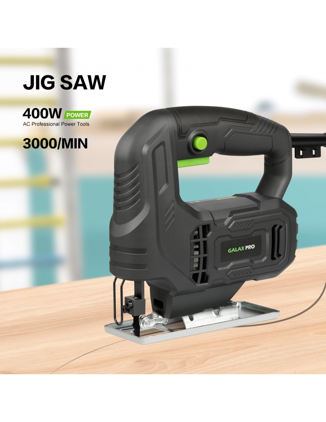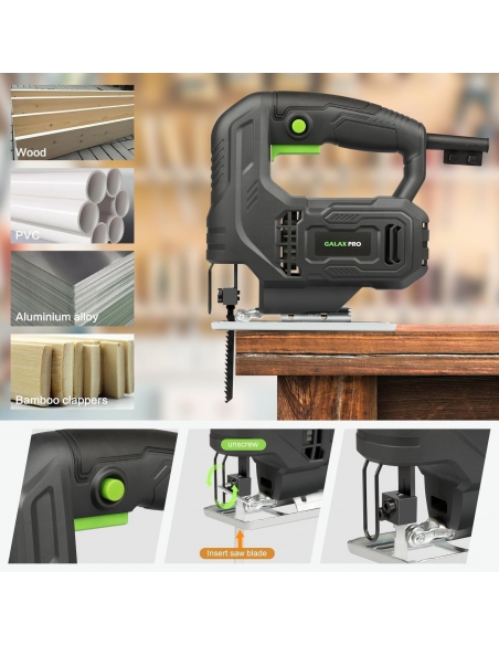 GALAX PRO Seghetto Alternativo,400 W 3000RPM per legno, Angolo di Inclinazione Regolabile da ±45 °,2 lama per sega adatto a Metallo e Legno