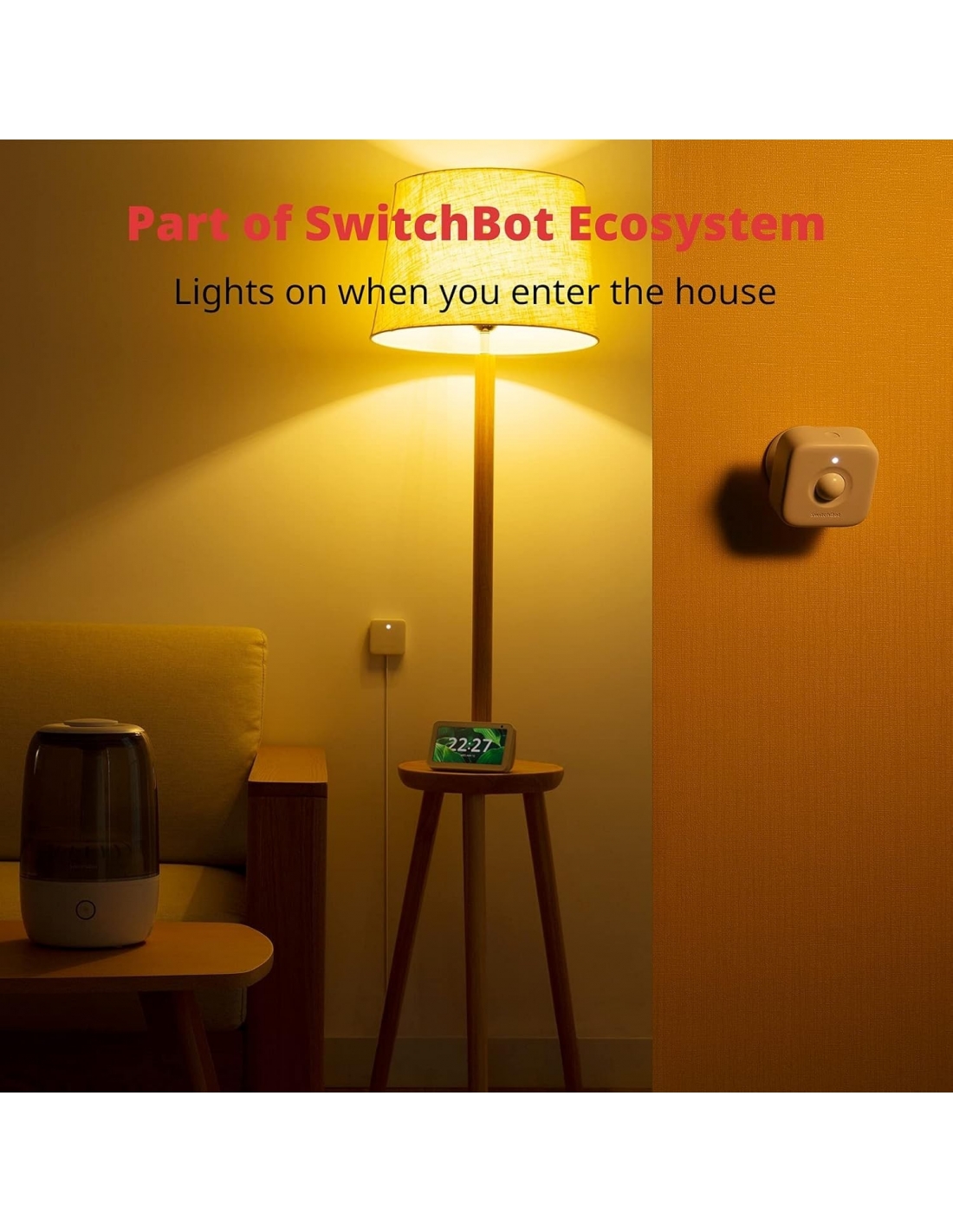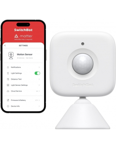 - Il sensore di movimento rileva i tuoi movimenti. Ha una portata di movimento fino a circa 9 metri entro 110° in orizzontale e 55° in verticale, spazio più che sufficiente per proteggere un’intera stanza della casa. Ti permette inoltre di personalizzare le impostazioni di sensibilità in modo da essere avvisato solo dei movimenti che ti interessano. Grazie al sensore di luce integrato, attiva automaticamente il Bot SwitchBot per accendere la luce se qualcuno si muove quando l'ambiente si fa buio.