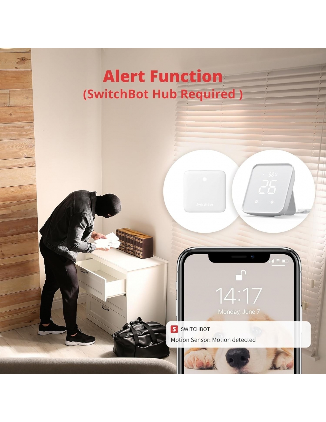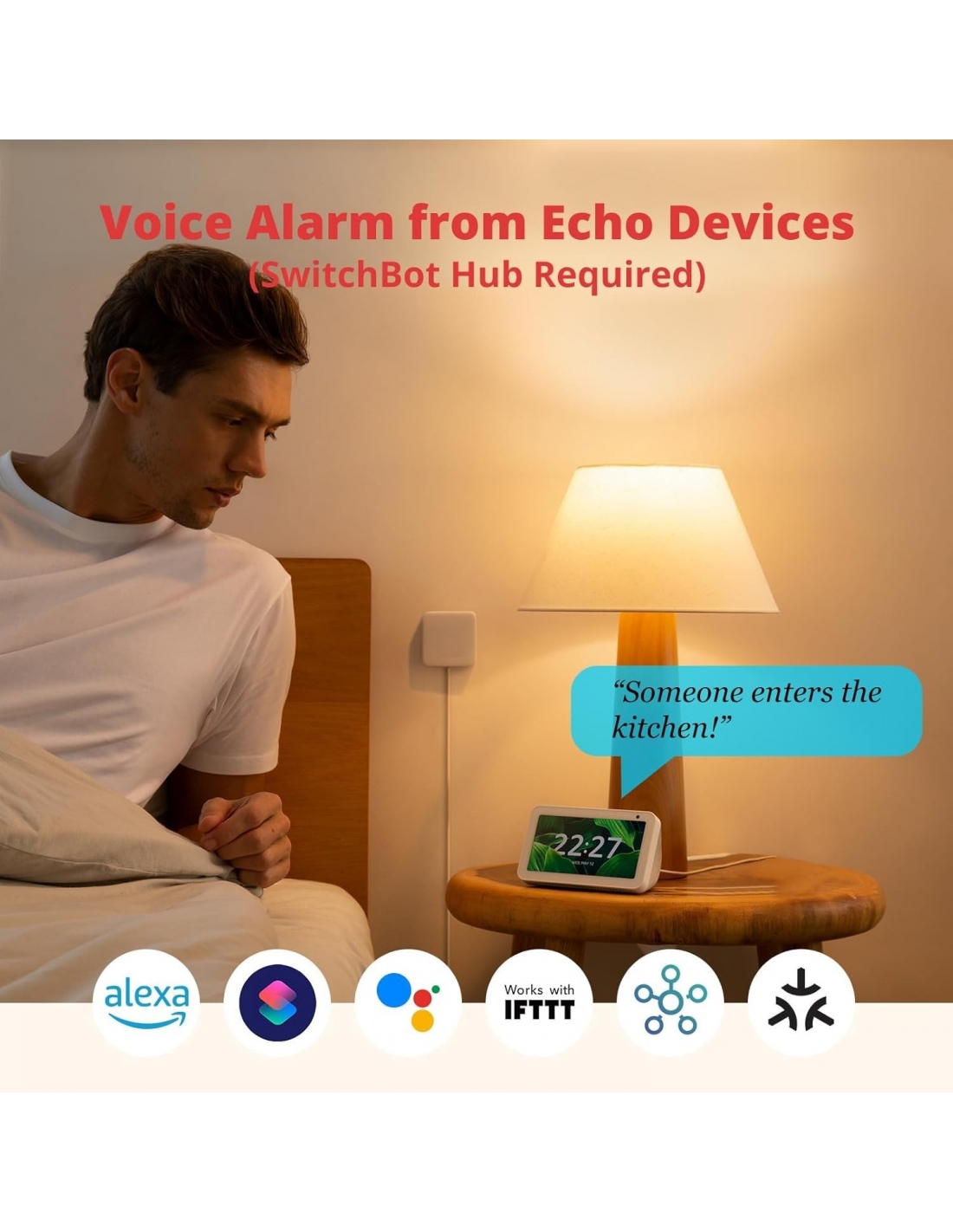 - Si integra nell’ecosistema SwitchBot: collega il sensore di contatto con altri prodotti SwitchBot e imposta “Scene" nell’app di SwitchBot (lingua italiana non garantita). Quando torni a casa, SwitchBot Bot (che preme un pulsante) verrà attivato automaticamente per accendere la luce e Alexa ti dirà «benvenuto a casa». Quando esci di casa, la telecamera interna SwitchBot si accende automaticamente per rilevare le condizioni interne (SwitchBot Hub necessario).