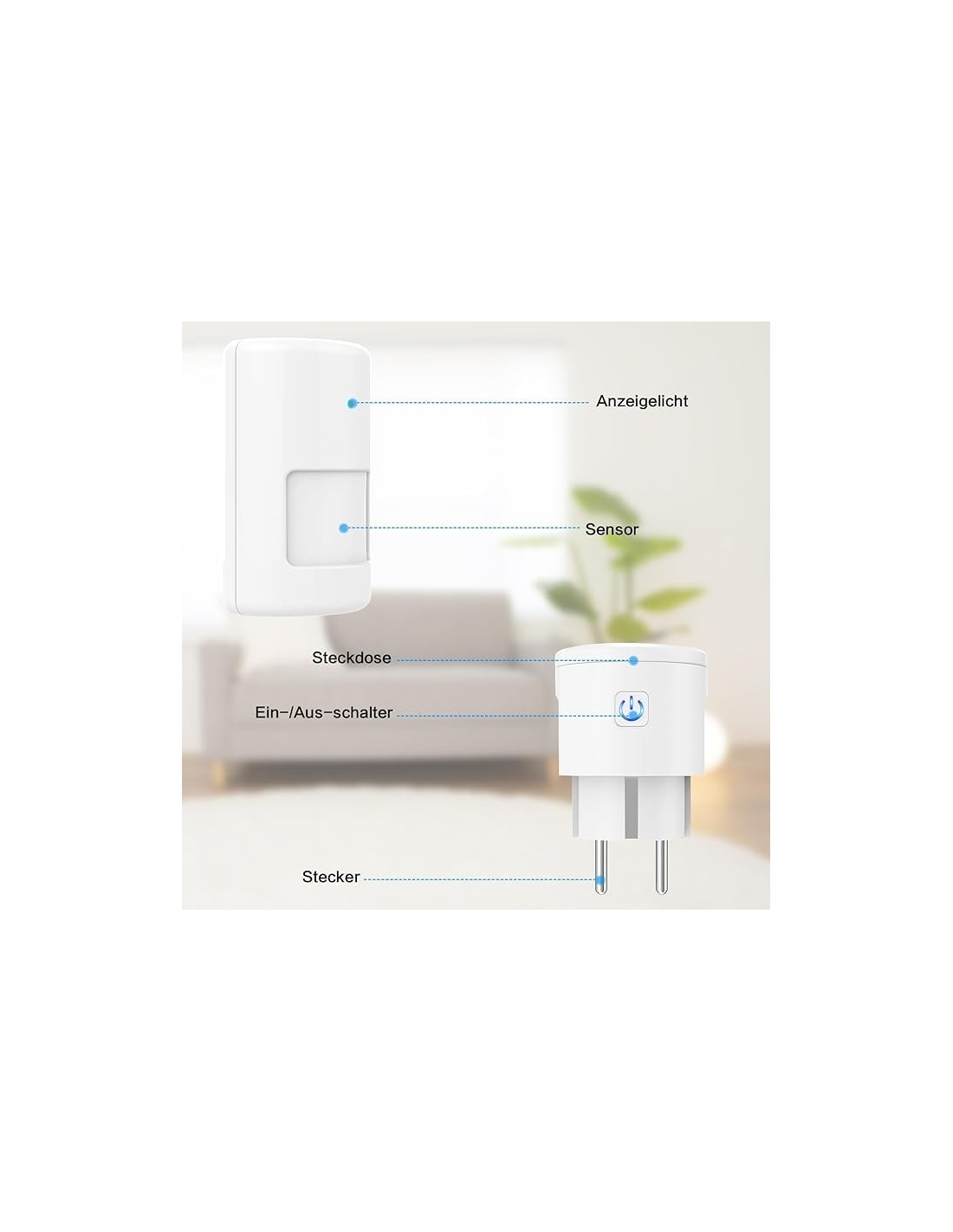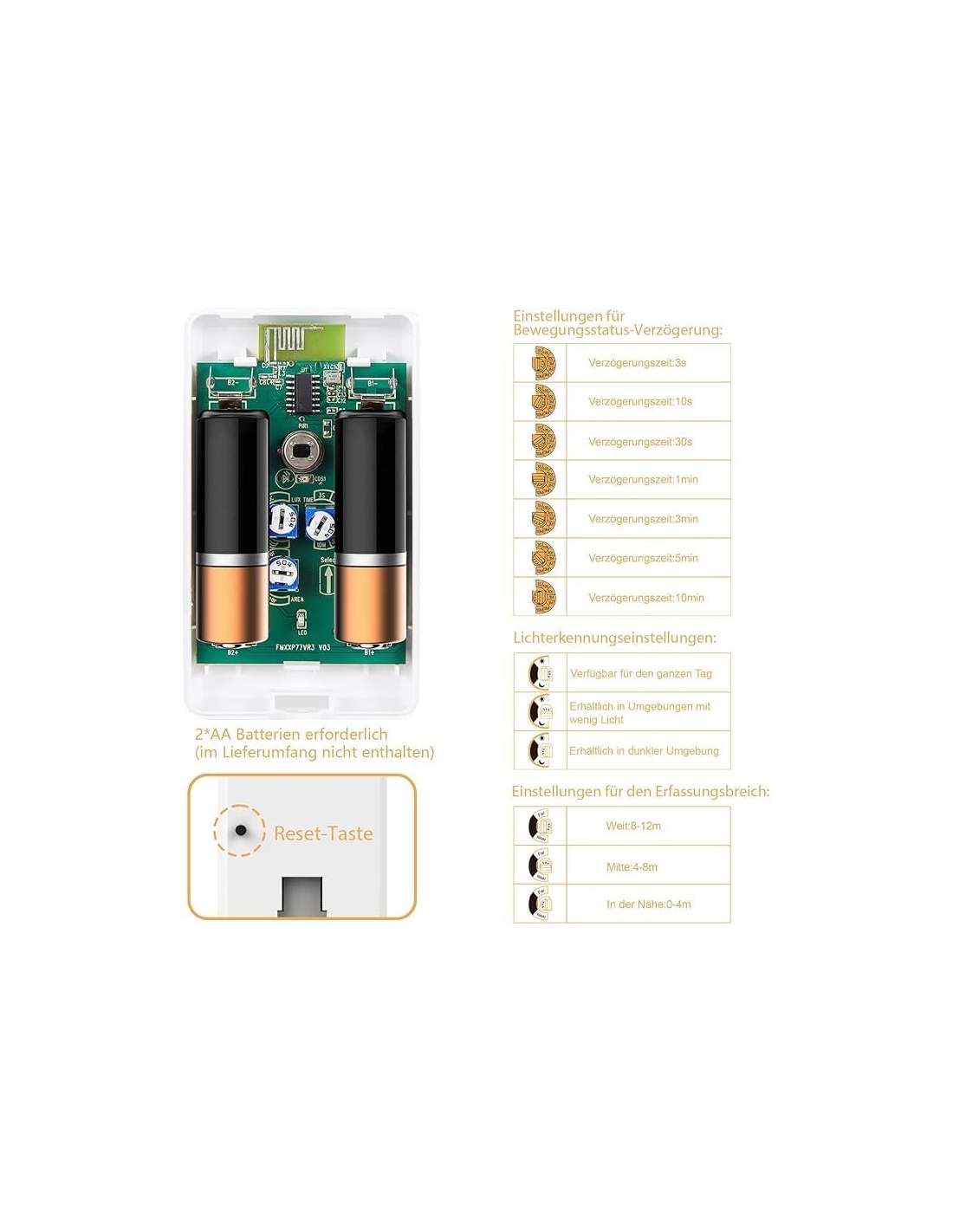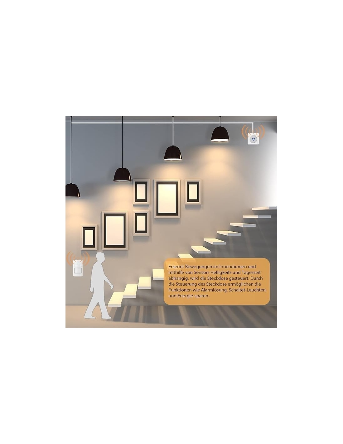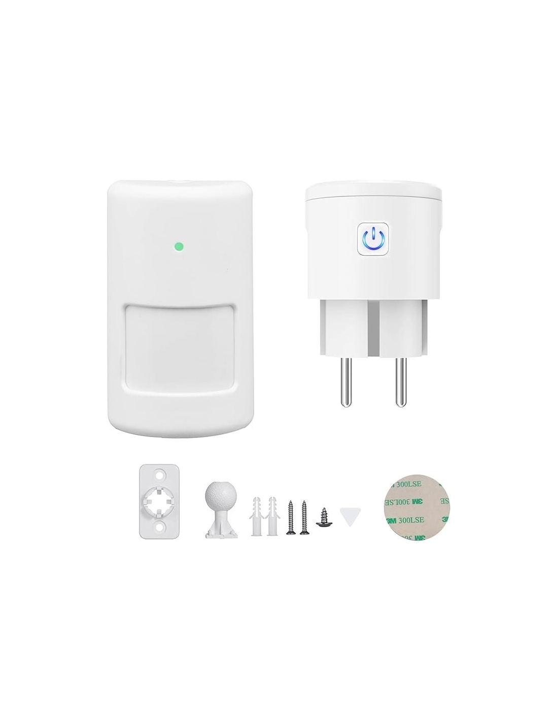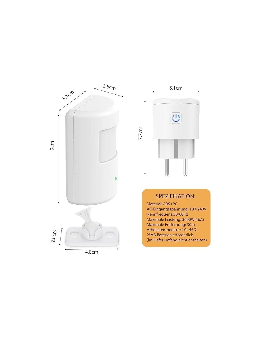 - Plug and play. La presa e il sensore wireless sono già accoppiati. La qualità del materiale è buona e promette una lunga durata. Per il funzionamento del sensore di movimento sono necessarie 2 batterie AAA (non incluse).