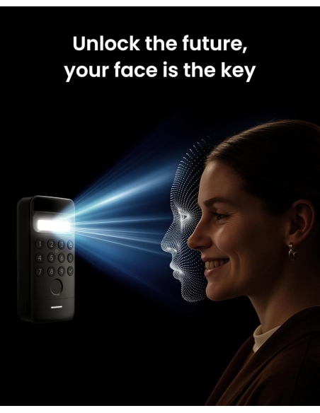 - Comfort quotidiano - Grazie alla tecnologia di riconoscimento facciale 3D a luce strutturata, SwitchBot Keypad Vision sblocca istantaneamente la serratura non appena ti avvicini alla porta. Nessuna operazione manuale richiesta: mentre le tue mani restano libere, risolve anche i problemi di imprecisione del riconoscimento delle impronte digitali causati da fattori ambientali o personali.