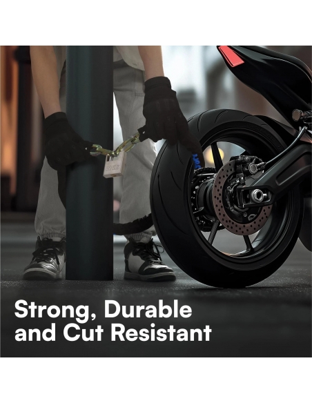 - Costruzione Robusta: le maglie della catena sono realizzate in acciaio al boro manganese temprato con triplo trattamento termico, resistenti e difficili da rompere. La larghezza interna ridotta difende ulteriormente da attacchi con leva