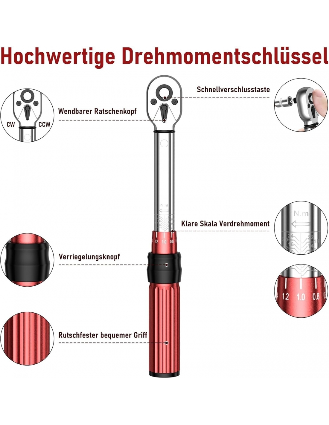 - Alta qualità e durata: le chiavi dinamometriche da 1/4 di pollice sono realizzate in una lega di nichel-cromo, che offre un'eccellente resistenza all'usura e alla ruggine. L'impugnatura a rullo in alluminio offre una migliore resistenza allo scivolamento e una presa comoda. Materiali di alta qualità per una maggiore durata.