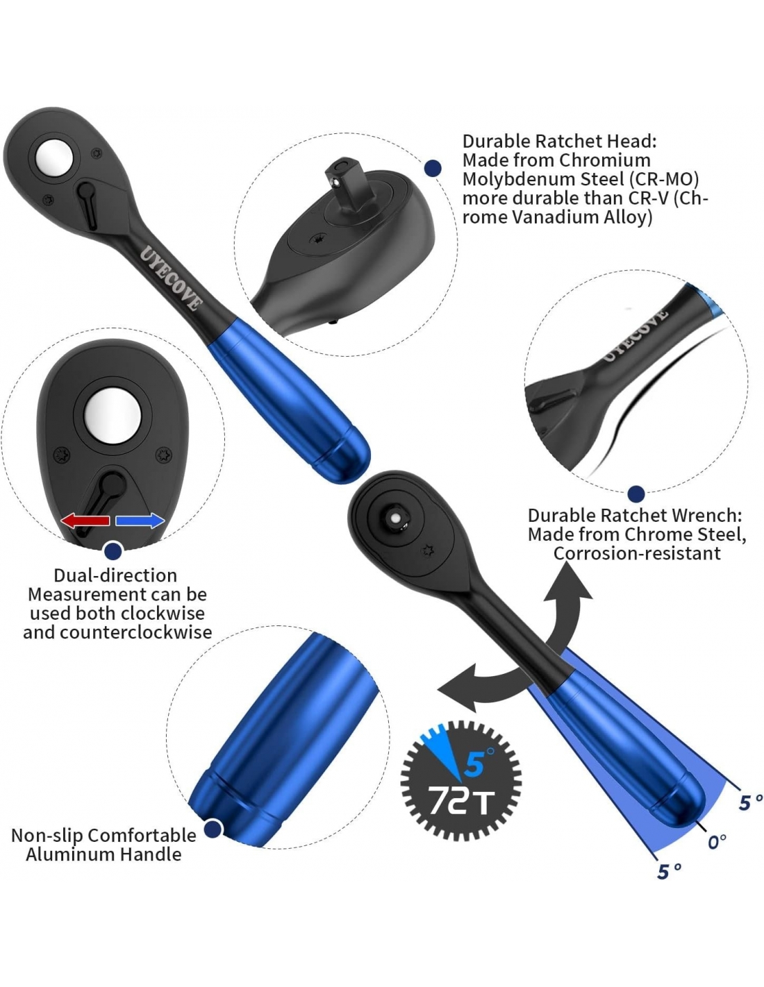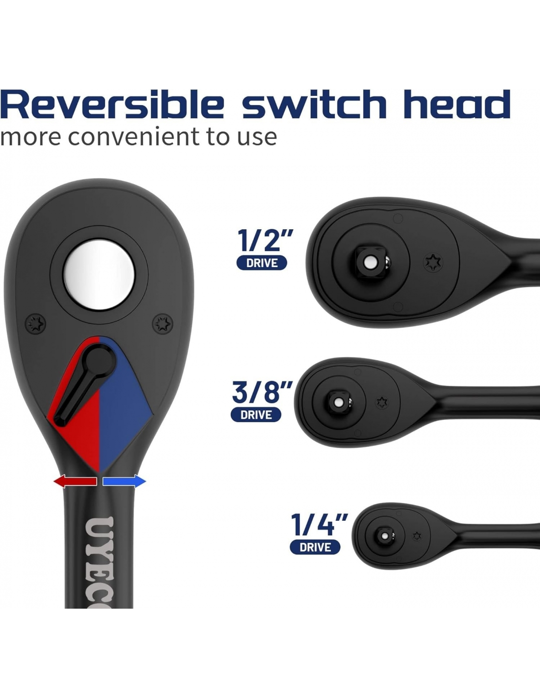 - Tre misure per il lavoro: set di cricchetti UYECOVE da 1/4", 3/8", 1/2", lunghezze 25 cm, 20 cm, 15 cm. Sono disponibili tre misure di set di cricchetti standard per soddisfare le esigenze di lavoro quotidiane.