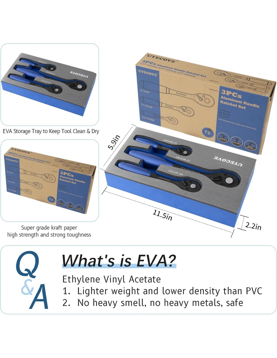 UYECOVE Set di chiavi a cricchetto da 3 pezzi, con attacco da 1/4", 3/8", 1/2"