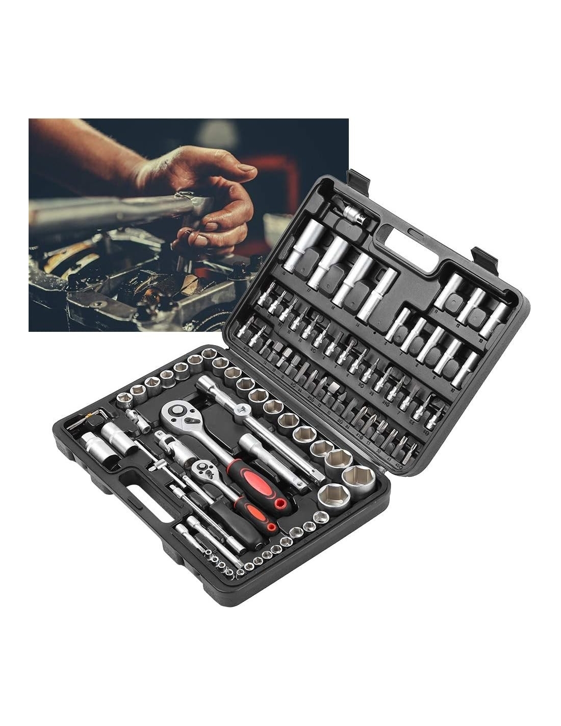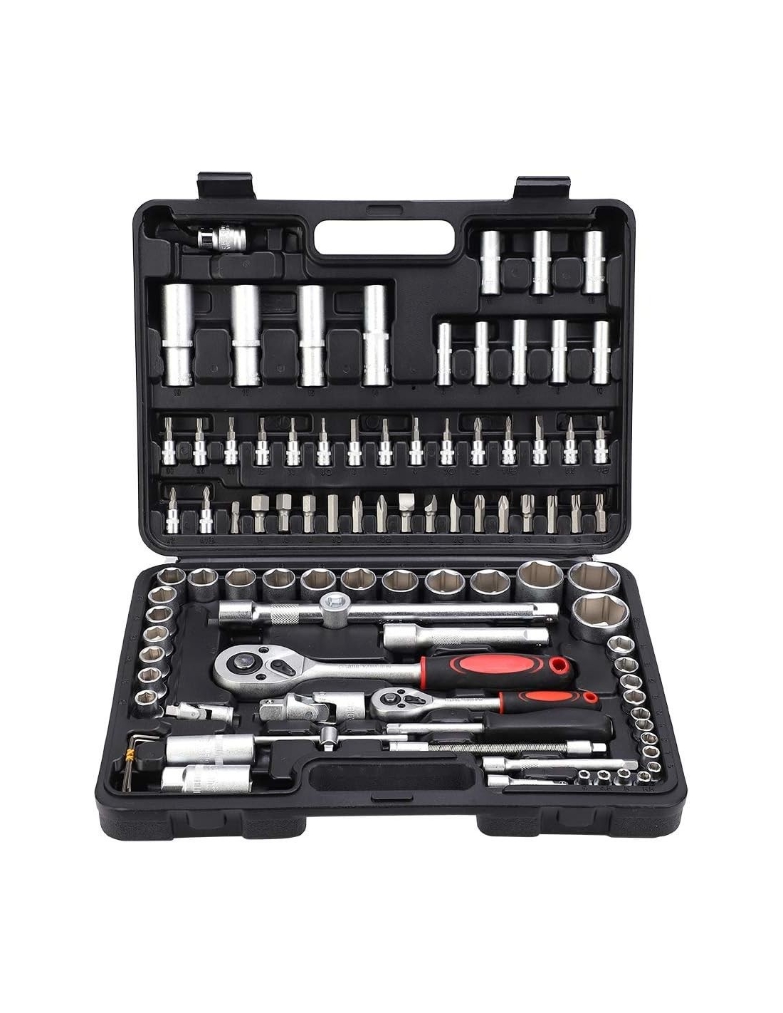 Ausla Set di 94 chiavi a cricchetto DR con asta di prolunga, chiave esagonale, con scatola di plastica