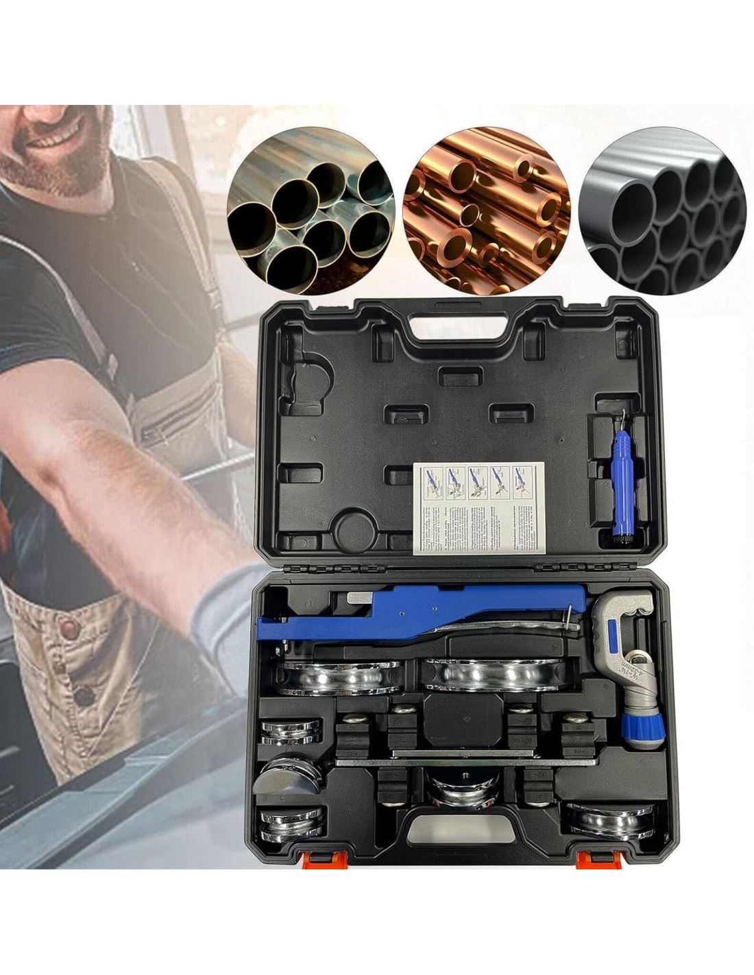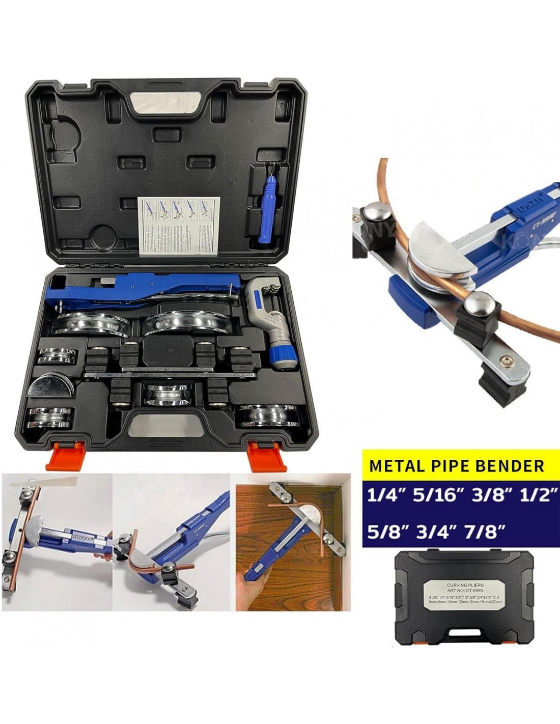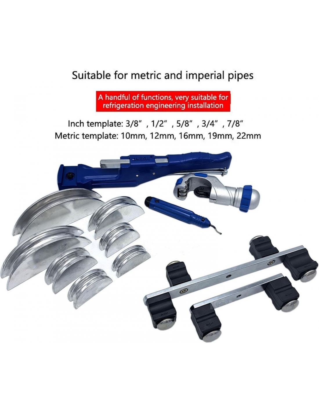 Jargrovs CT999N Piegatubi manuale, 6-22mm (1/4'' - 7/8'') con 7 stampi, piegatubi rame e alluminio 0-90°
