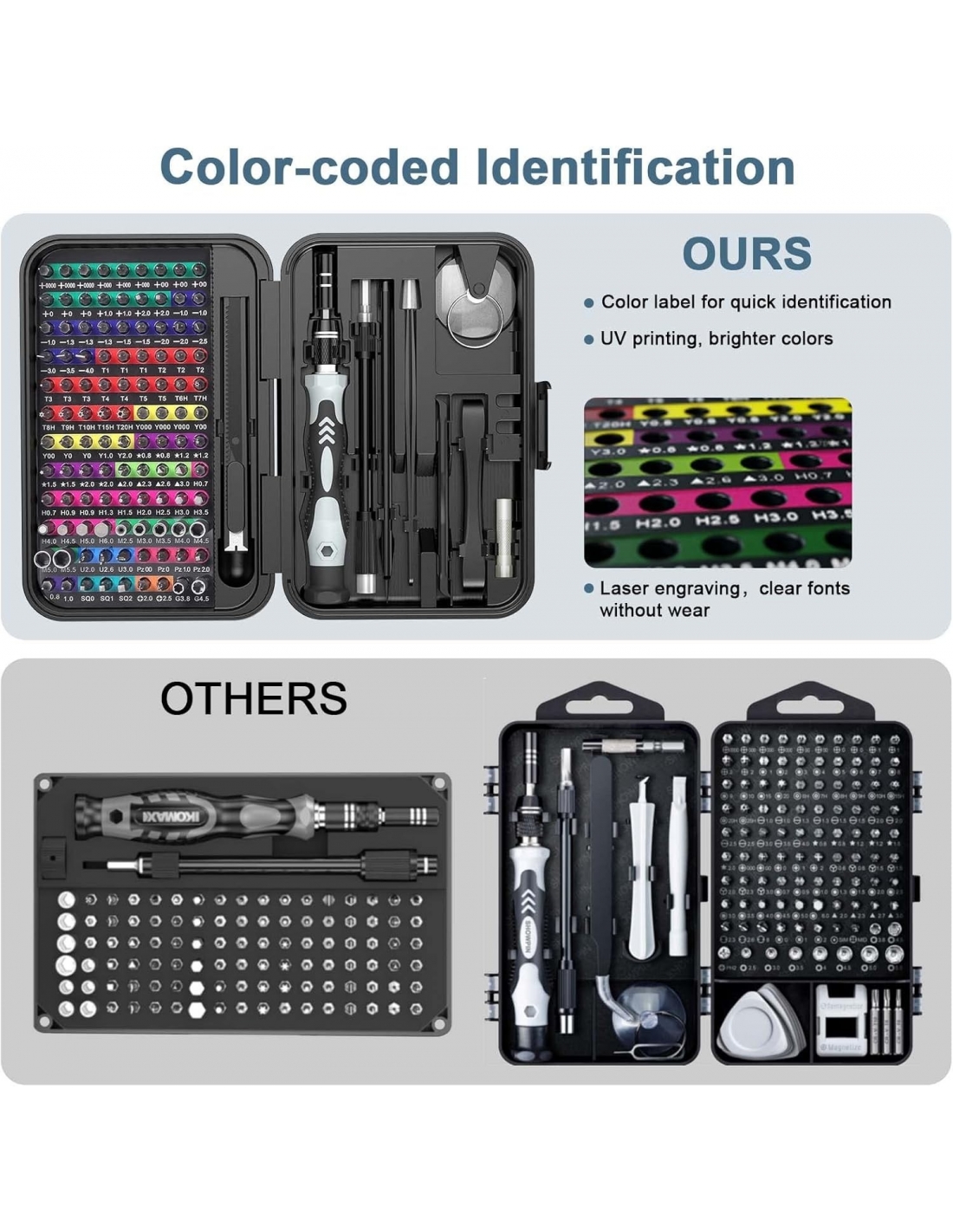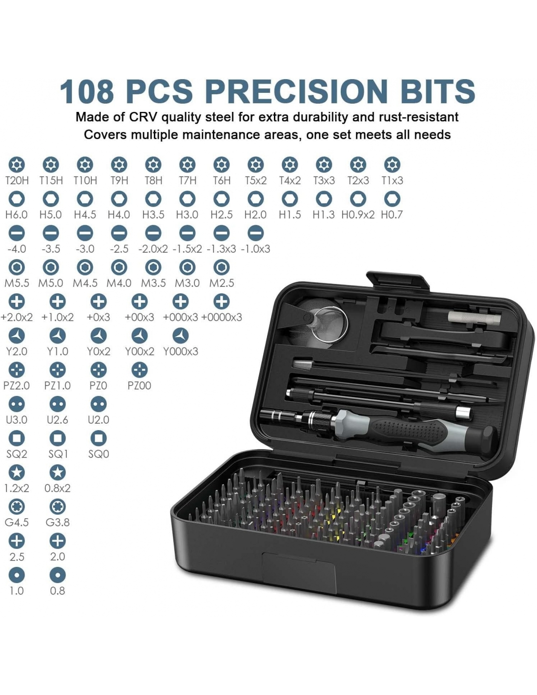 - Set di cacciaviti di precisione 132 in 1 con 108 punte, set di cacciaviti Torx magnetici con custodia, set di strumenti di riparazione professionale con magnetizzatore, per console di gioco, elettronica, iPhone