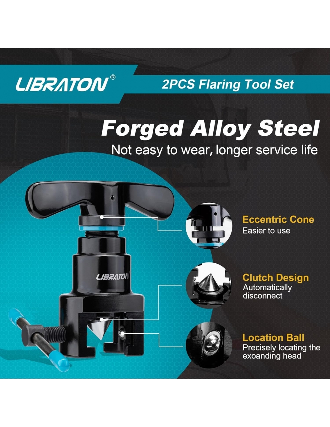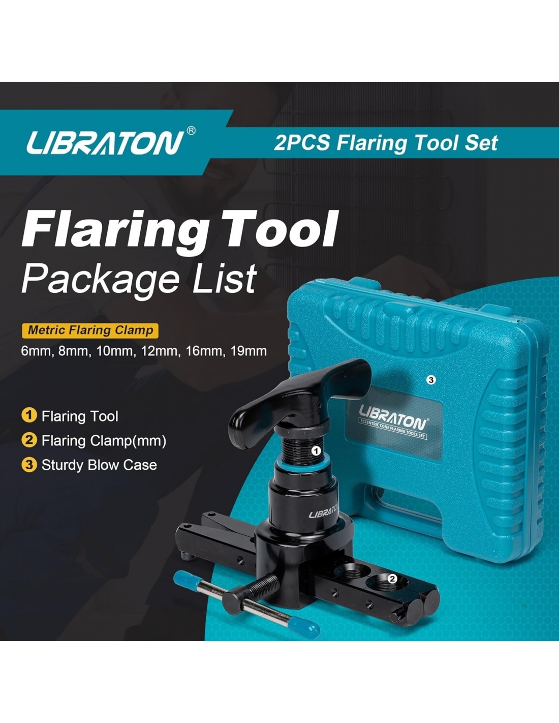 - [Strumento di svasatura] Libraton kit di strumenti per la svasatura dei freni viene fornito con uno flare bar metrico per tubi in rame o alluminio da diametro esterno 6mm, 9mm, 10mm 12mm, 16mm, 19mm. NON PER TUBI IN POLLICI.