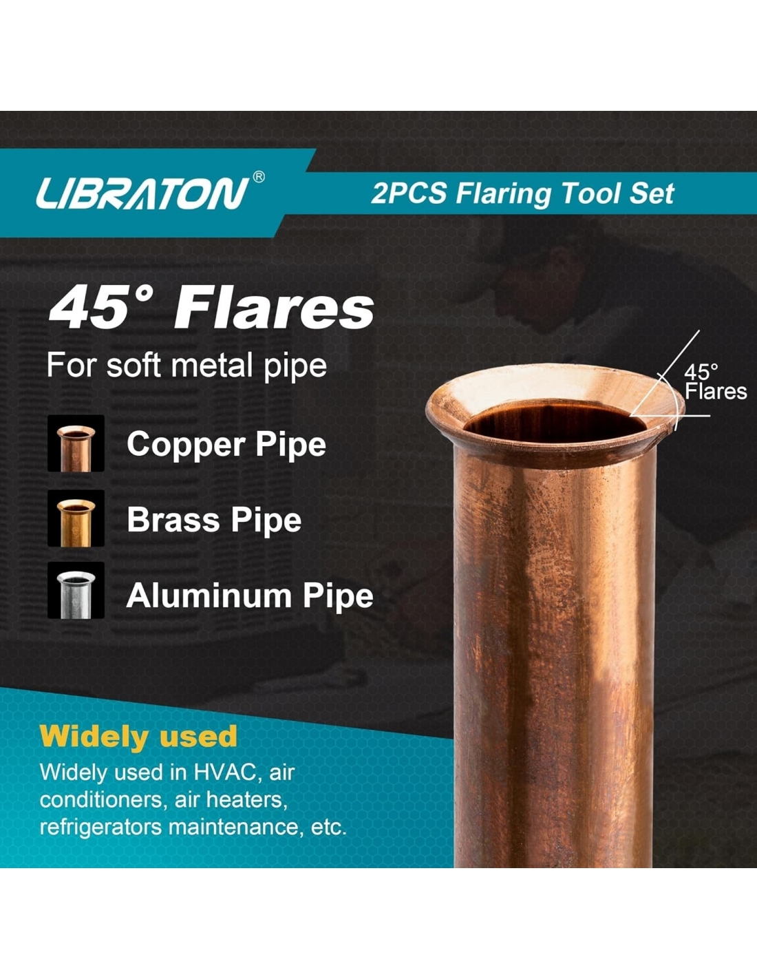 - [Ampia applicazione] Lo cartellatrice dei tubi è applicabile a tubi metallici morbidi come tubi di rame, tubi di ottone e tubi di alluminio. Ampiamente usato in HVAC, condizionatori d'aria, riscaldatori d'aria, frigoriferi, ecc. Fare riferimento al video dimostrativo del funzionamento sulla pagina del prodotto.