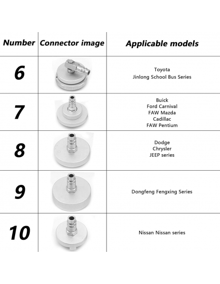 - ✅ 【Funzionamento semplice e contrassegni numerati】: questo set di adattatori per il serbatoio del liquido dei freni può essere utilizzato con un cambia liquido dei freni manuale o elettrico o una macchina per la sostituzione dell'olio dei freni, puoi scaricare facilmente il vecchio liquido dei freni e riempire l'intero sistema frenante con un nuovo freno fluido. Ogni adattatore è dotato di un numero di serie per una facile identificazione.