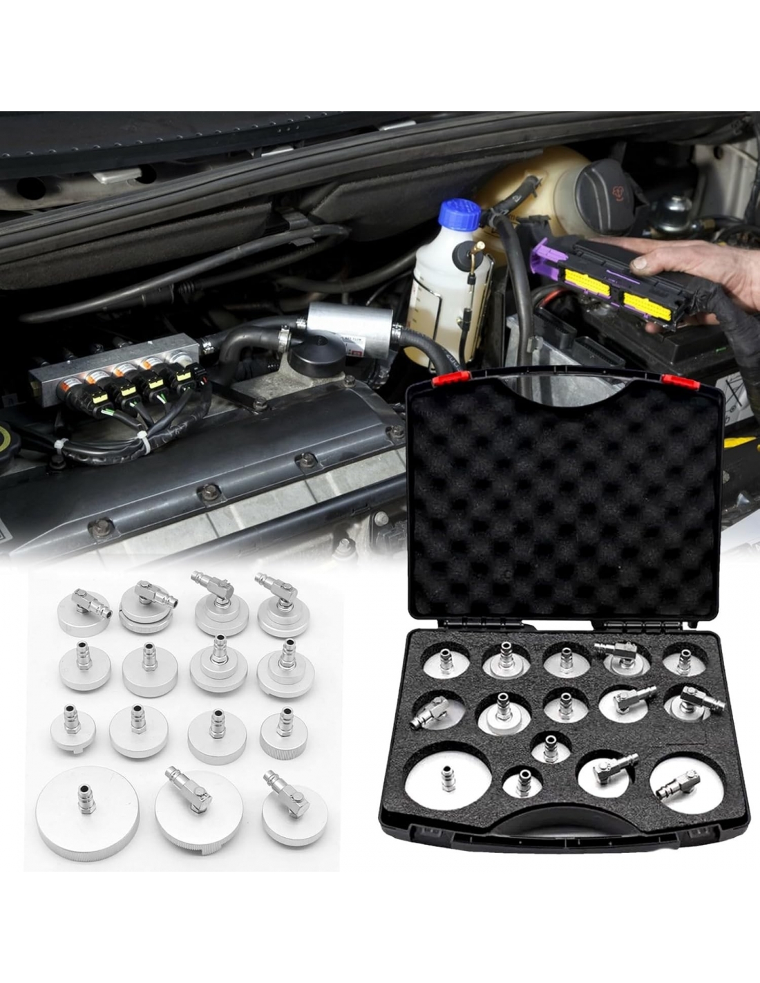 - ✅ 【Cassetta degli attrezzi portatile】 Il kit adattatore per cilindro del liquido dei freni viene fornito con una scatola di immagazzinaggio personalizzata, facile trasporto e organizzazione rapida. Può mantenere organizzato ogni elemento della tua attrezzatura. Le scanalature in schiuma all'interno della cassetta degli attrezzi proteggono l'adattatore da urti e umidità, lo proteggono dall'usura e dalla ruggine e lo mantengono ben organizzato dopo l'uso.
